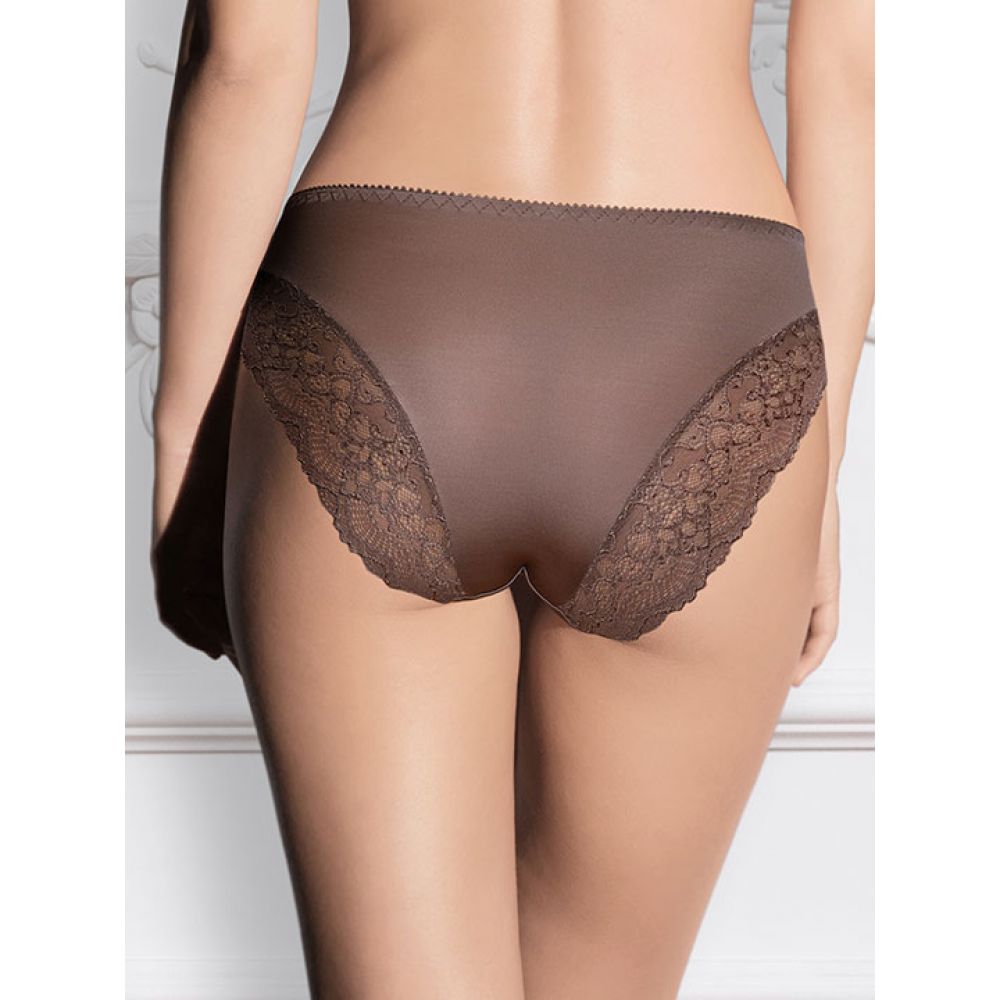 Трусы-слип комфорт с завышенной линией талии. Выполнены из эластичной принтованной микрофибры, гладкой микрофибры и эластичного кружева. Срезы по краю ножек обработаны на плоскошовной машине. Украшение: атласный бантик.
