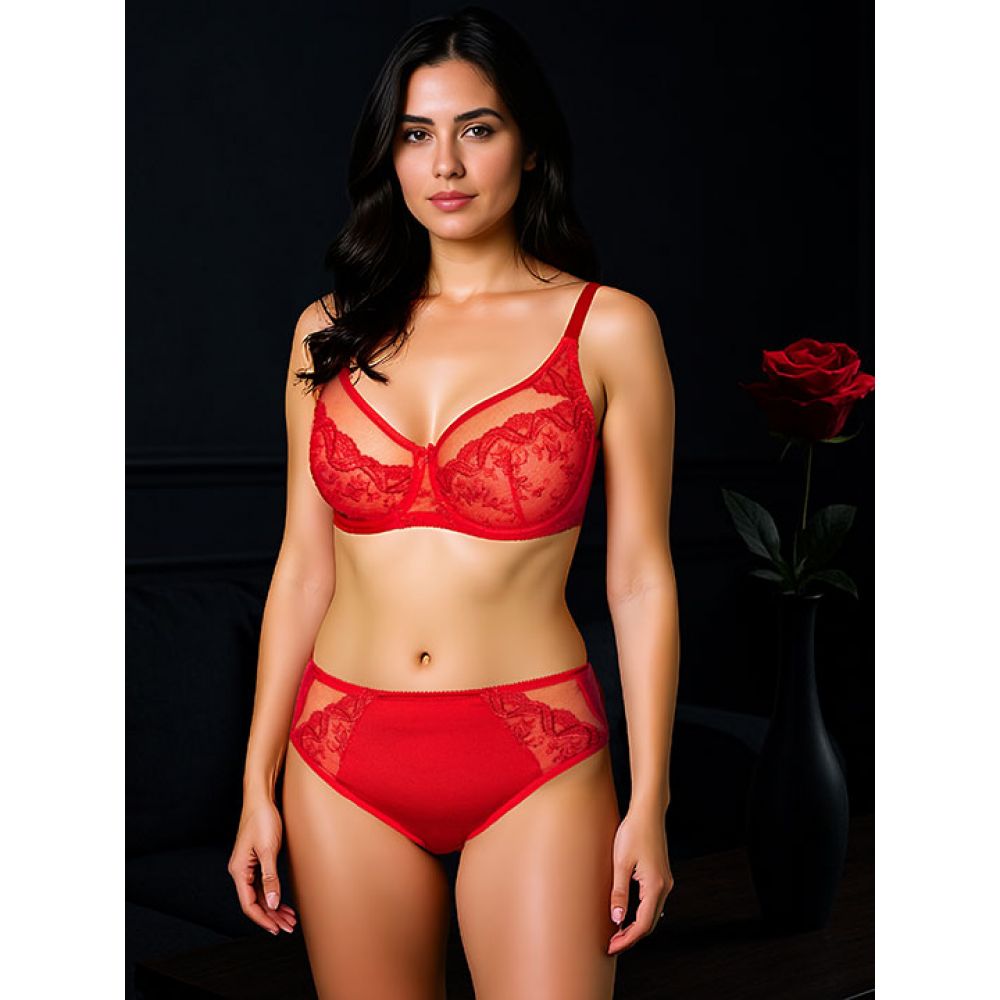Трусы-слип 213 со средней линией талии. Выполнены из микрофибры и не эластичной вышивки. Срезы по краю ножек обработаны на плоскошовной машине.