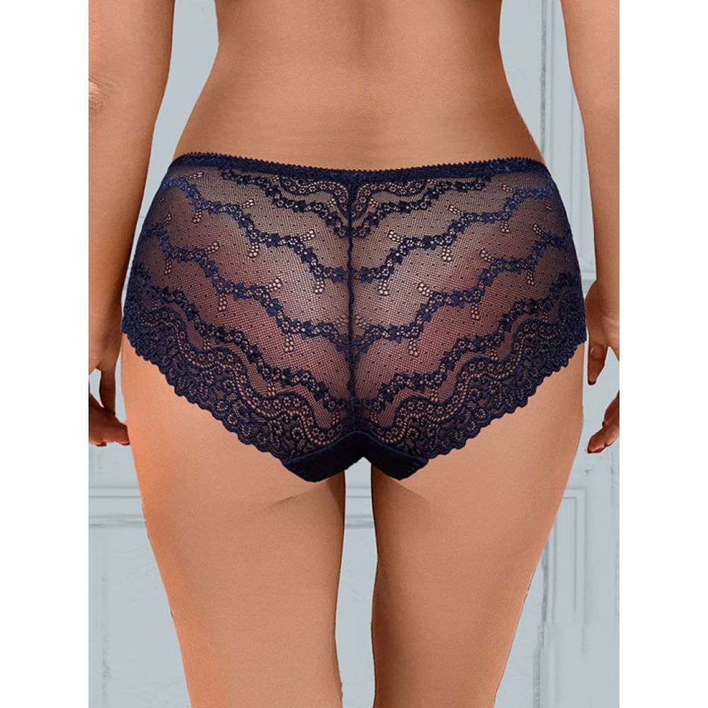 Трусы-слип (панти) со средней линией талии. Выполнены из набивной микрофибры в точку и эластичного кружева.