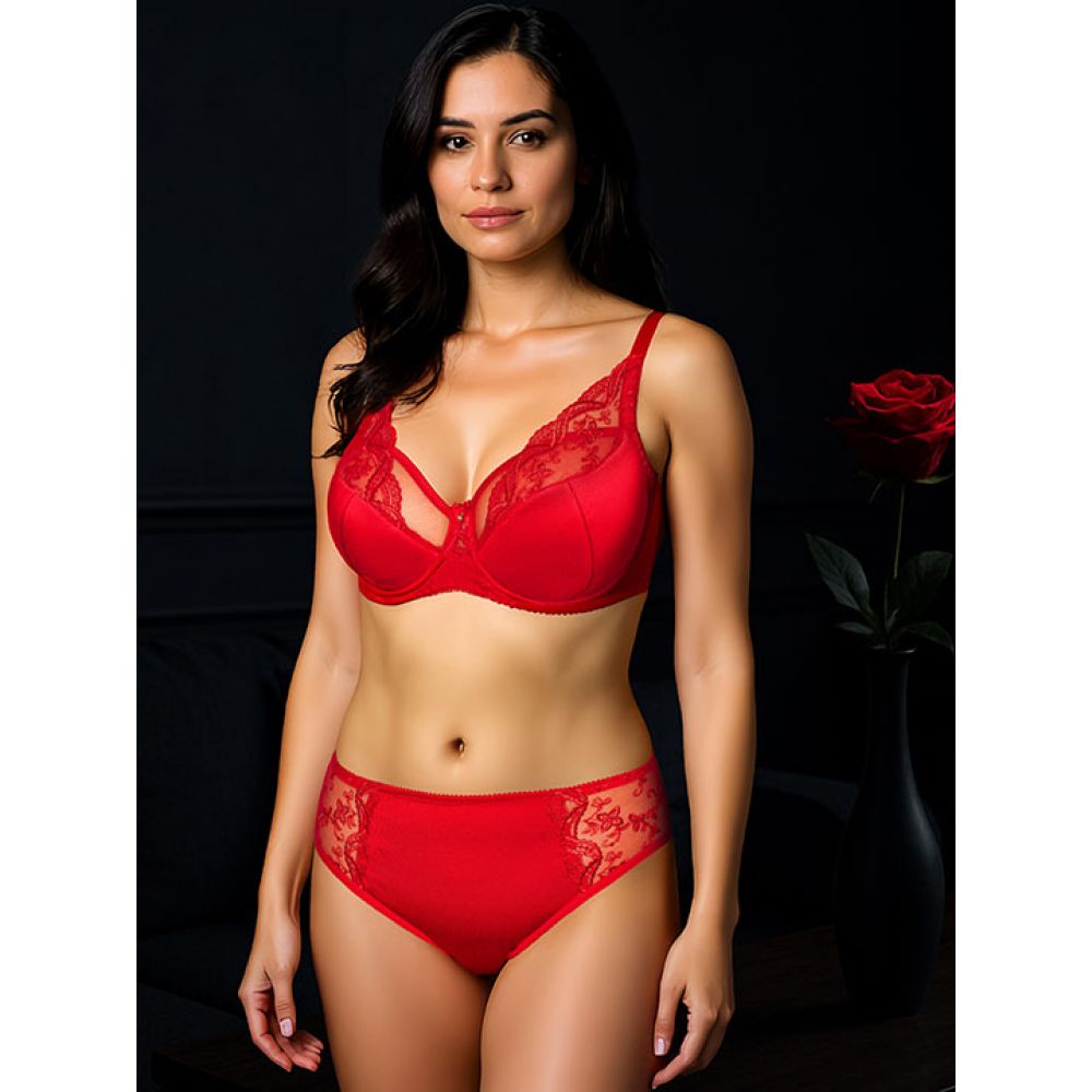 Трусы-слип 431 со средней линией талии. Выполнены из микрофибры и неэластичной вышивки. Срезы по краю ножек обработаны на плоскошовной машине.