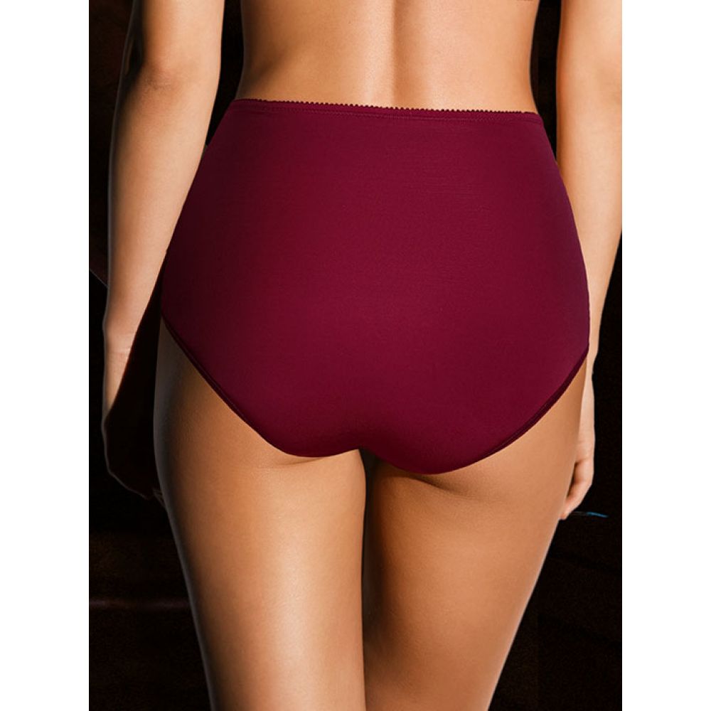 Трусы-слип комфорт макси с завышенной линией. Выполнены из набивного фактурного полотна с цветочным орнаметом, микрофибры и эластичного кружева. Срезы по краю ножек обработаны на плоскошовной машине. Украшение: атласный бантик.