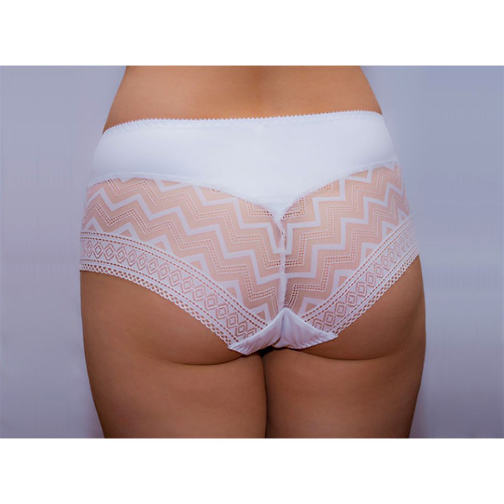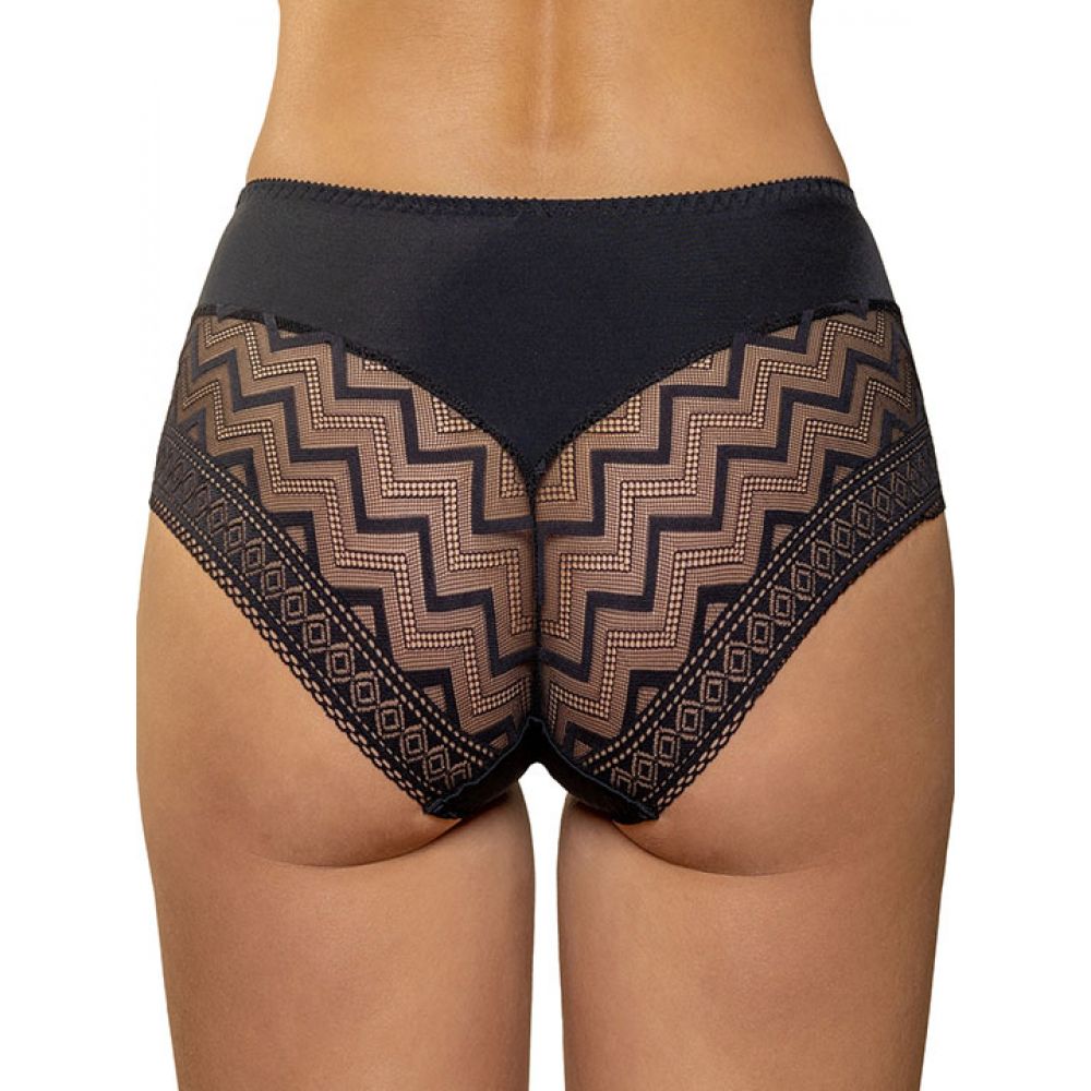 Трусы-слип комфорт с завышенной линией талии. Выполнены из микрофибры без блеска и эластичного кружева с орнаментом "геометрия". Ультратонкое эластичное кружево, как "вторая" кожа. Идеально подходят для обтягивающих брюк и юбок.