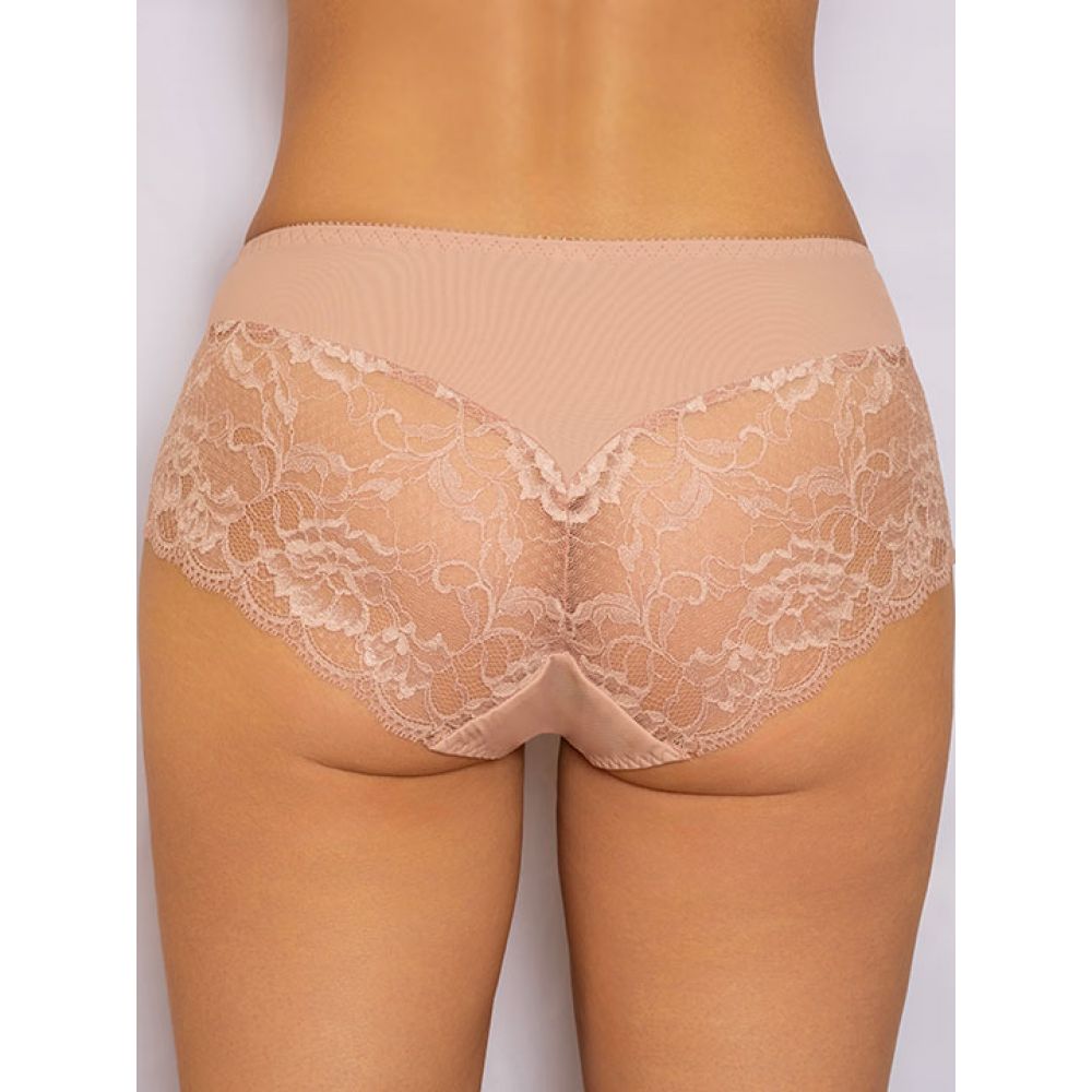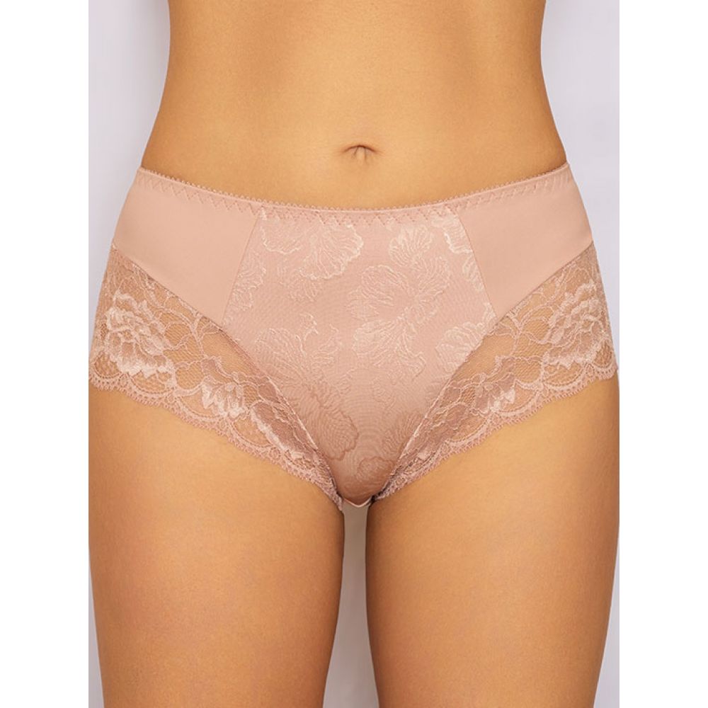 Трусы-слип комфорт с завышенной линией талии. Выполнены из набивного фактурного полотна с цветочным орнаметом, микрофибры и эластичного кружева.