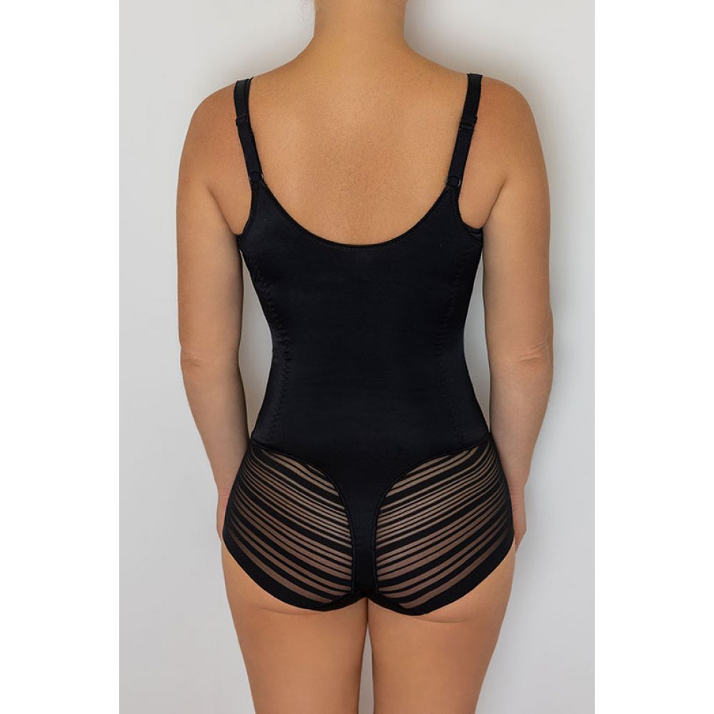 Новый торсет-Боди 510 под грудь с усиленной коррекцией. Торсет-Боди выполнено из материала "soft" нового поколения и эластичного кружева с орнаментом "полоска". Материала "soft" нового поколения невероятно мягкий на ощупь, при этом позволяет создать корректирующий эффект в области живота, бедер и ягодиц. Благодаря специальному крою обеспечивается поддержка спины, уменьшается объем боковых зон, осуществляется поддержка живота, а также торсет приподнимает грудь за счет специального кроя, сбоку вокруг груди. Открытая верхняя часть позволяет носить торсет с любимым бельем.