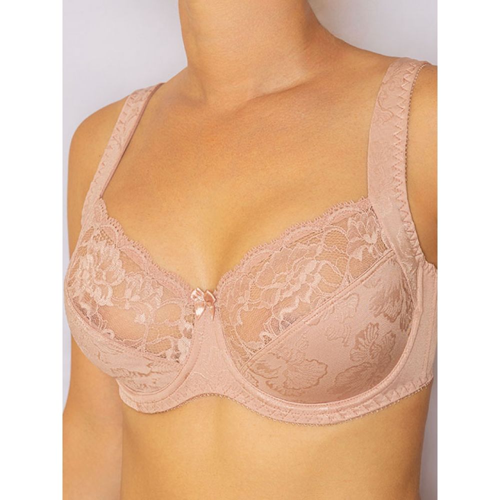 Бюстгальтер "мягкая чашка" с подкроем. Выполнен из набивного фактурного полотна с цветочным орнаметом и эластичного кружева. Нижние детали чашки на дубляже с хлопком. Благодаря боковому подкрою, переходящему в бретель обеспечена высокая функциональность бюстгальтера и гарантирована непревзойденная посадка. На стане бюстгальтера боковые корректирующие пластины, позволяющие прилегать к телу и не скручиваться поясу бюстгальтера, создают необходимую опору и делают силуэт более четким. Украшение: атласный бантик.