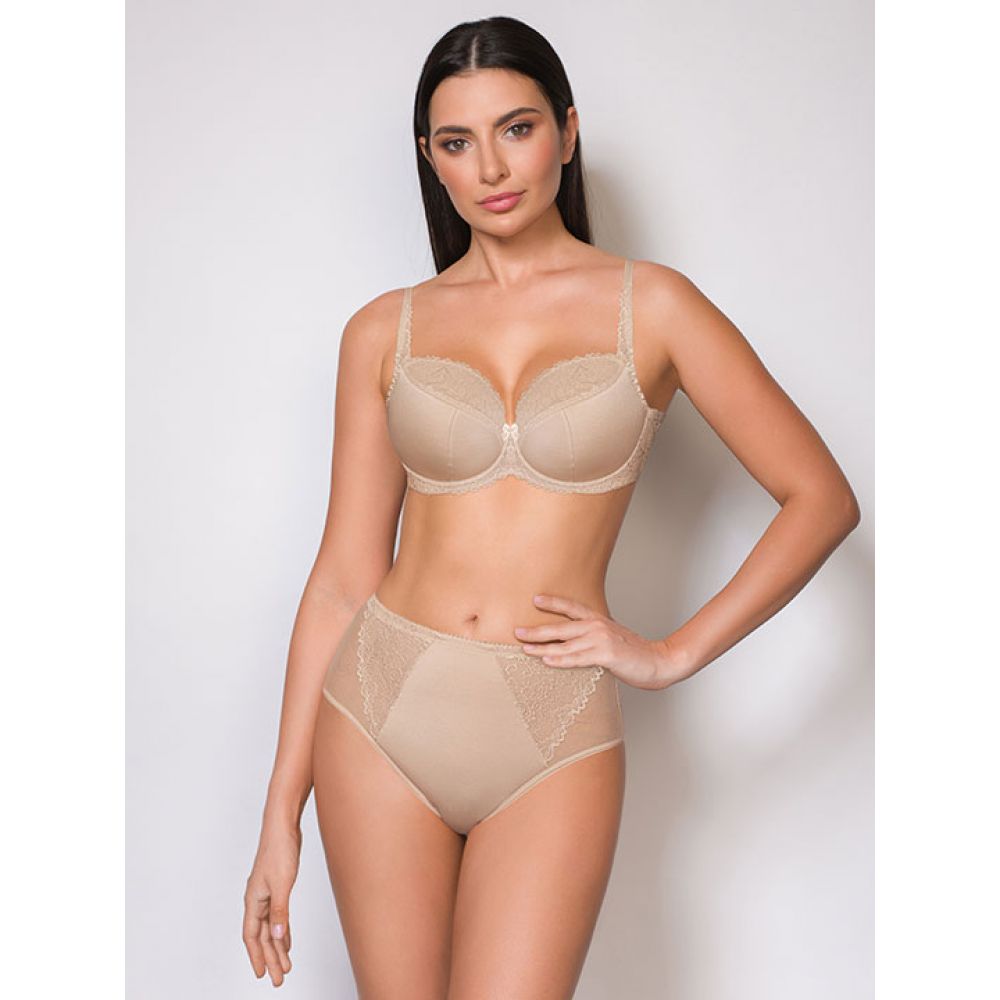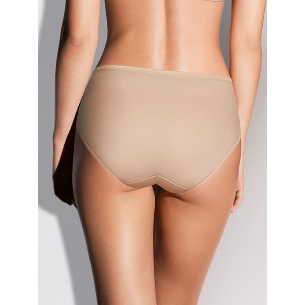 Трусы-слип комфорт макси с завышенной линией талии. Выполнены из микрофибры, эластичного кружева и сетки. Срезы по краю ножек обработаны на плоскошовной машине.