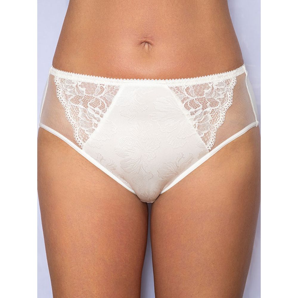 Трусы-слип комфорт макси с завышенной линией талии. Выполнены из набивного фактурного полотна с цветочным орнаметом, микрофибры, эластичного кружева и сетки. Срезы по краю ножек обработаны на плоскошовной машине.