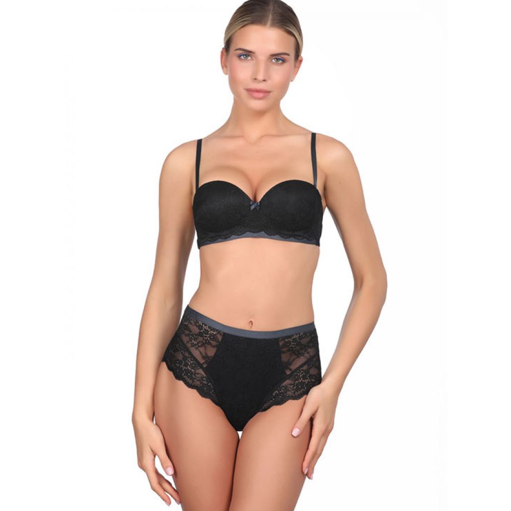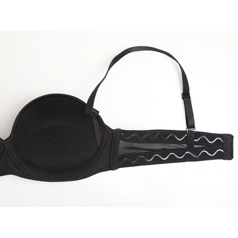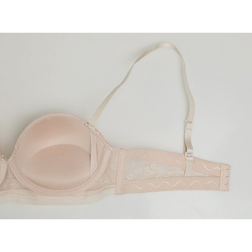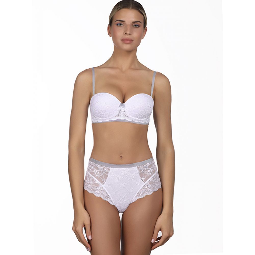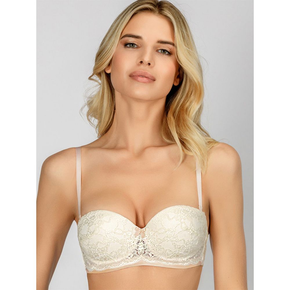Бюстгальтер-анжелика, "фашия" с градуированной чашкой, на косточках, средний размер пуша. Силикон на резинках крыльев. Кружевной стан усилен спереди сеткой и боковыми костями. Место крепления бретели к чашке усилено специальной лентой.