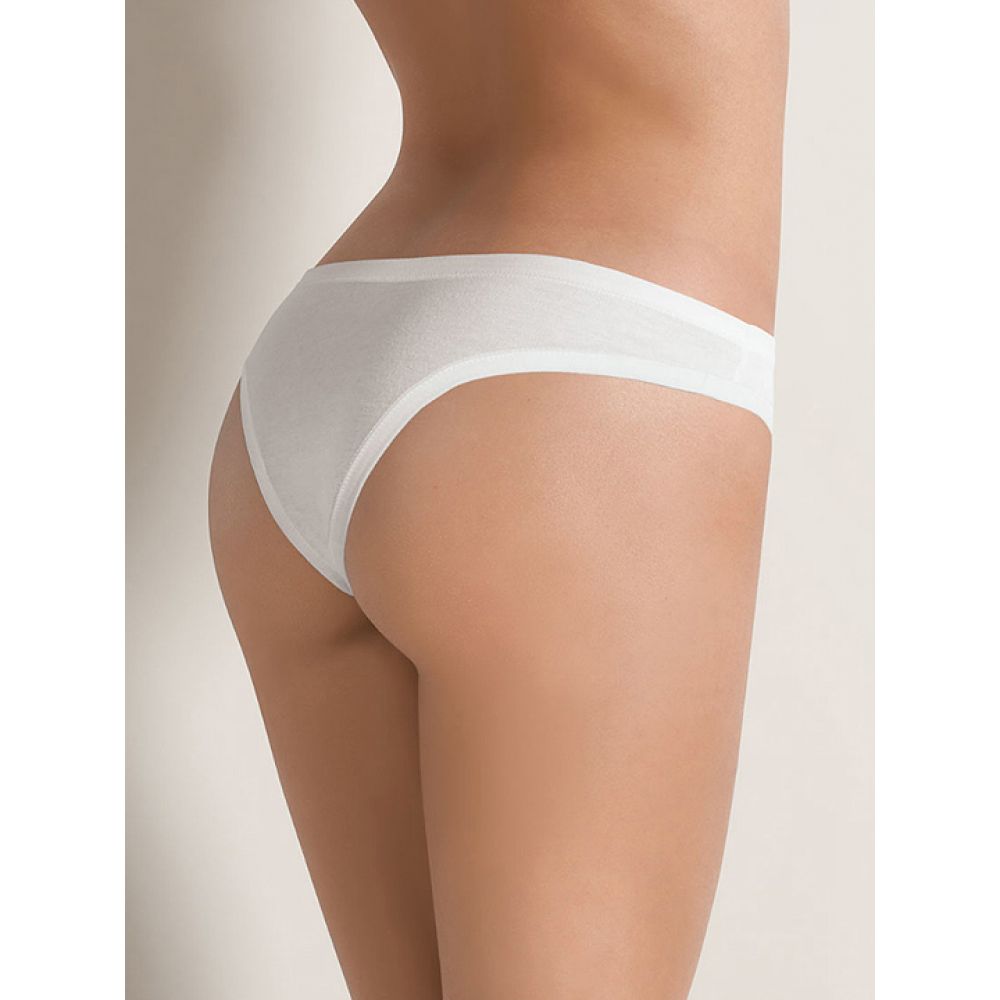 Трусики-бразильяна из мягкого эластичного хлопка тянущегося в 2е стороны. Линия талии и открытия ноги обработана окантовкой 1,3см. Высота бочка 4,5см. Низкая посадка талии. Набор из 3 шт.