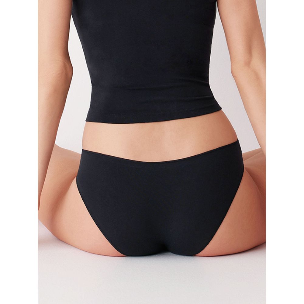 Трусики-слип из мягкого эластичного хлопка тянущегося в 2е стороны и кружева. Линия талии сзади и вся линия открытия ноги обработана плоским оверлоком. Высота бочка 4см. Низкая посадка талии. Набор из 2 шт.