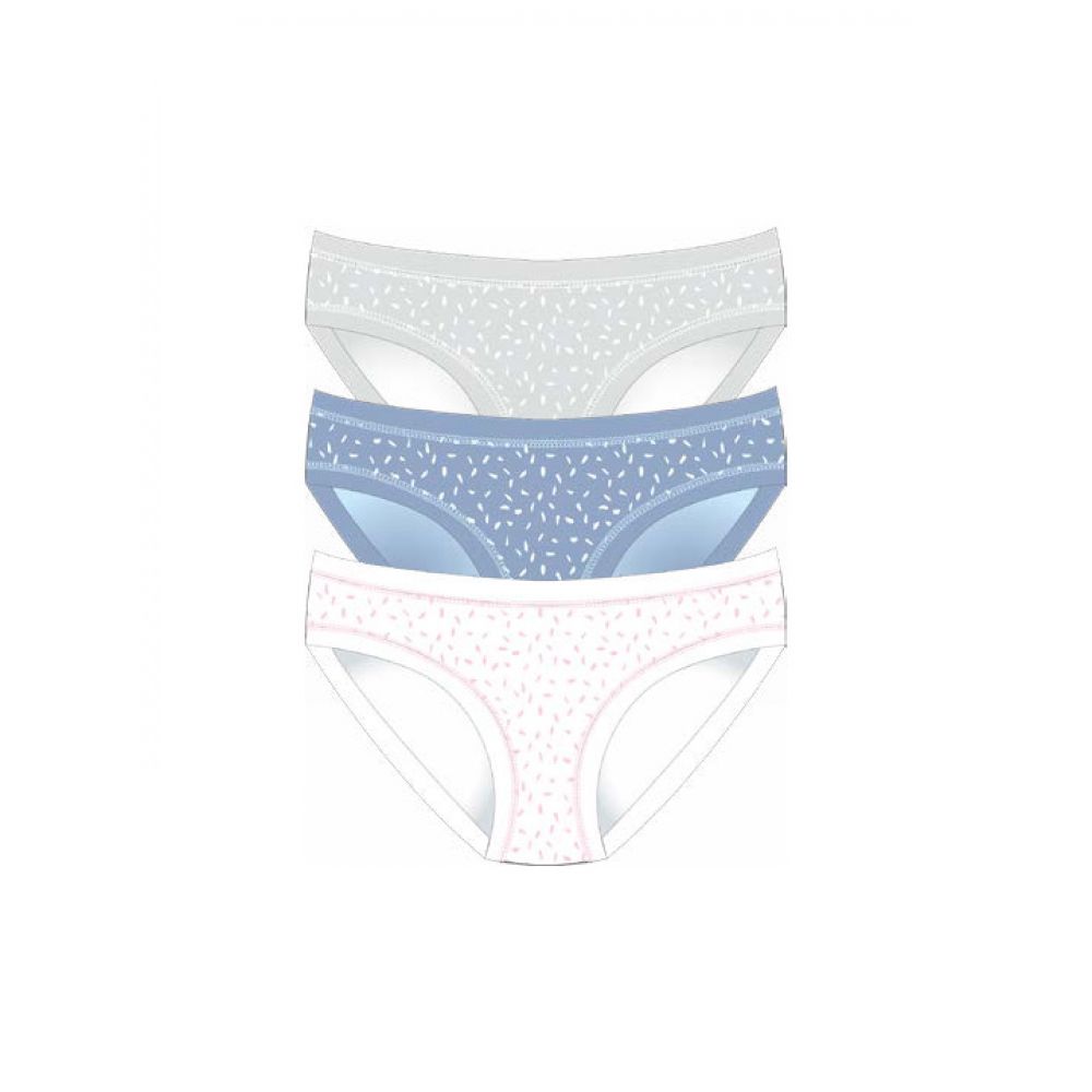 Трусики-слип из мягкого эластичного хлопка тянущегося в 2е стороны. Линия талии обработана окантовкой шириной 2см, линия открытия ноги 1,3см. Высота бочка 6,5 см. Средняя посадка талии. Набор из 3 шт.