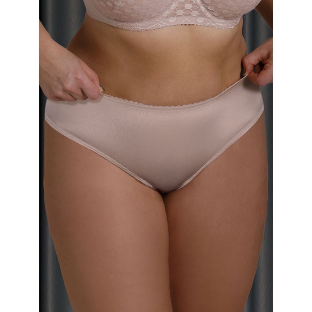 Трусы-бразилиана со средней линией талии. Выполены из эластичного шелковистого полотна с сатиновым блеском и эластичного кружева
