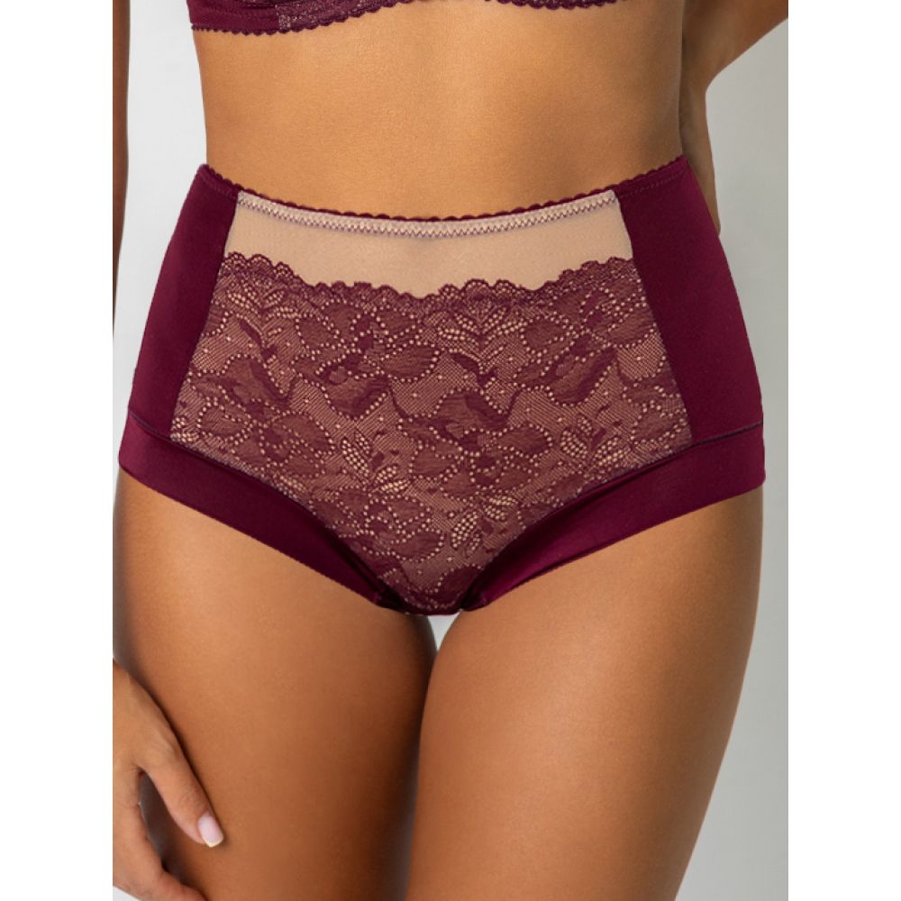Трусы-слип комфорт с завышенной линией талии. Выполнены из эластичного шелковистого полотна с сатиновым блеском и эластичного кружева