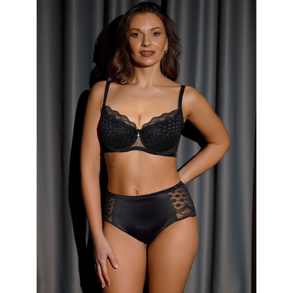 Трусы-слип (панти) со средней линией талии. Выполены из эластичного шелковистого полотна с сатиновым блеском и эластичного кружева