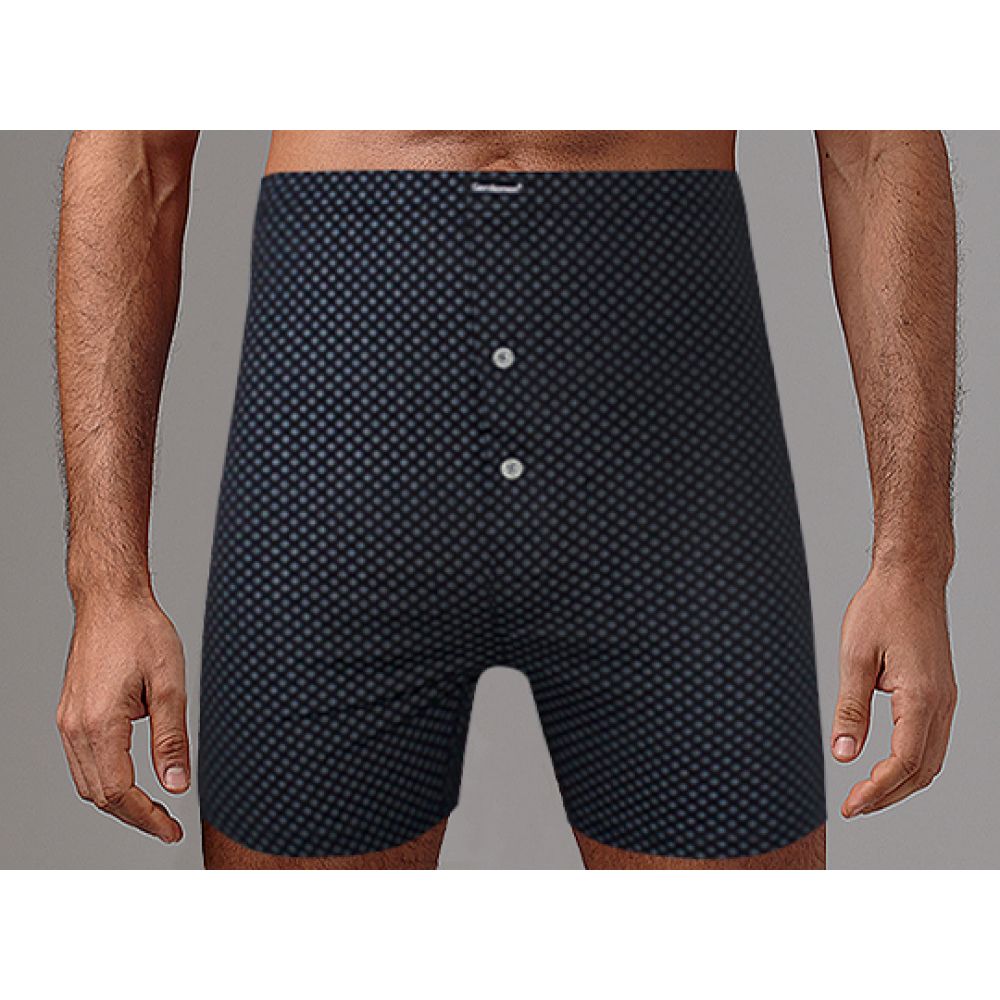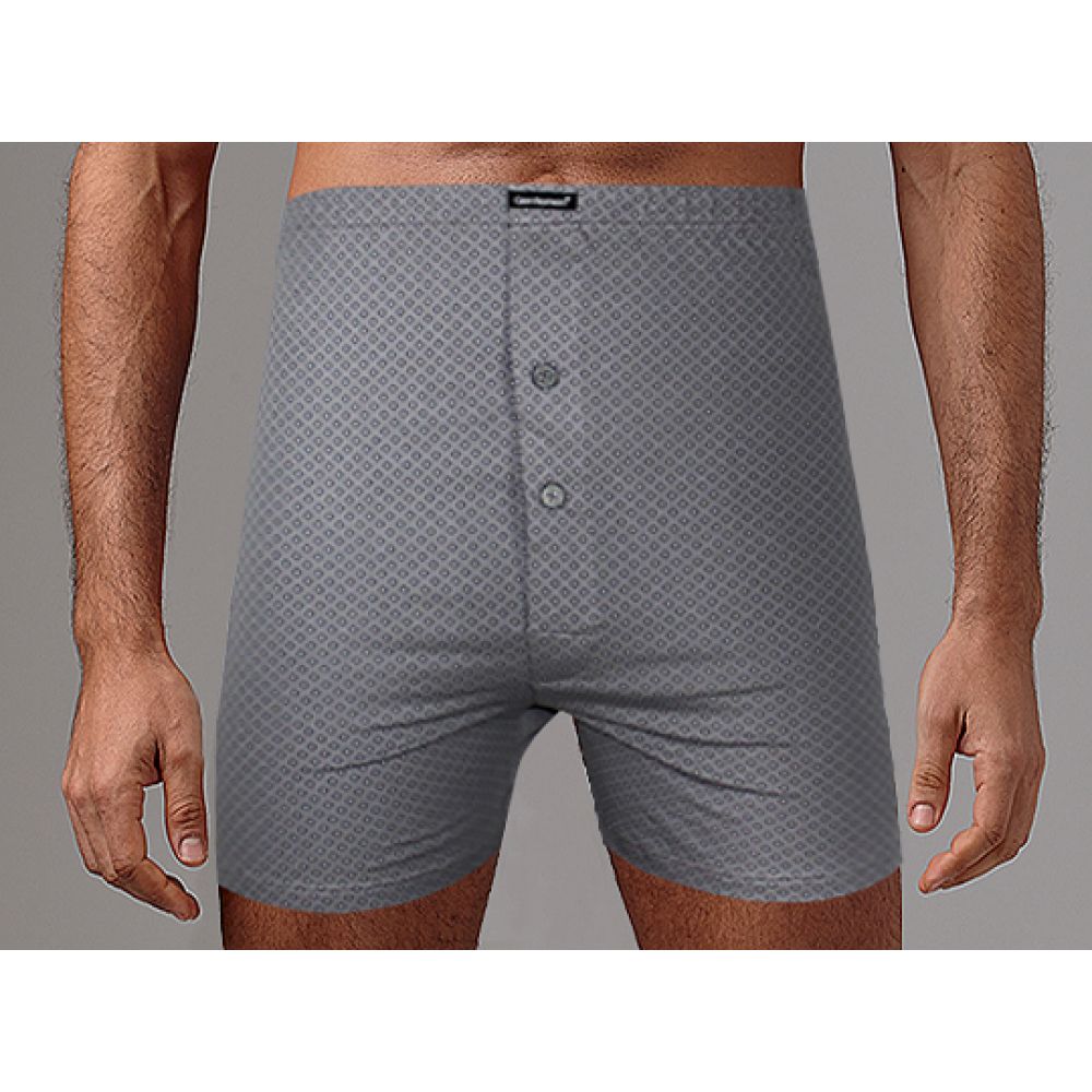 Мужские трусы-боксеры. Мягкая резинка и нашивка с логотипом сверху, застежка на две пуговицы спереди.