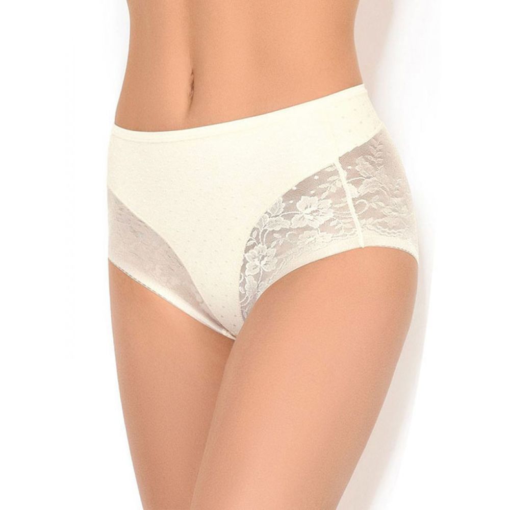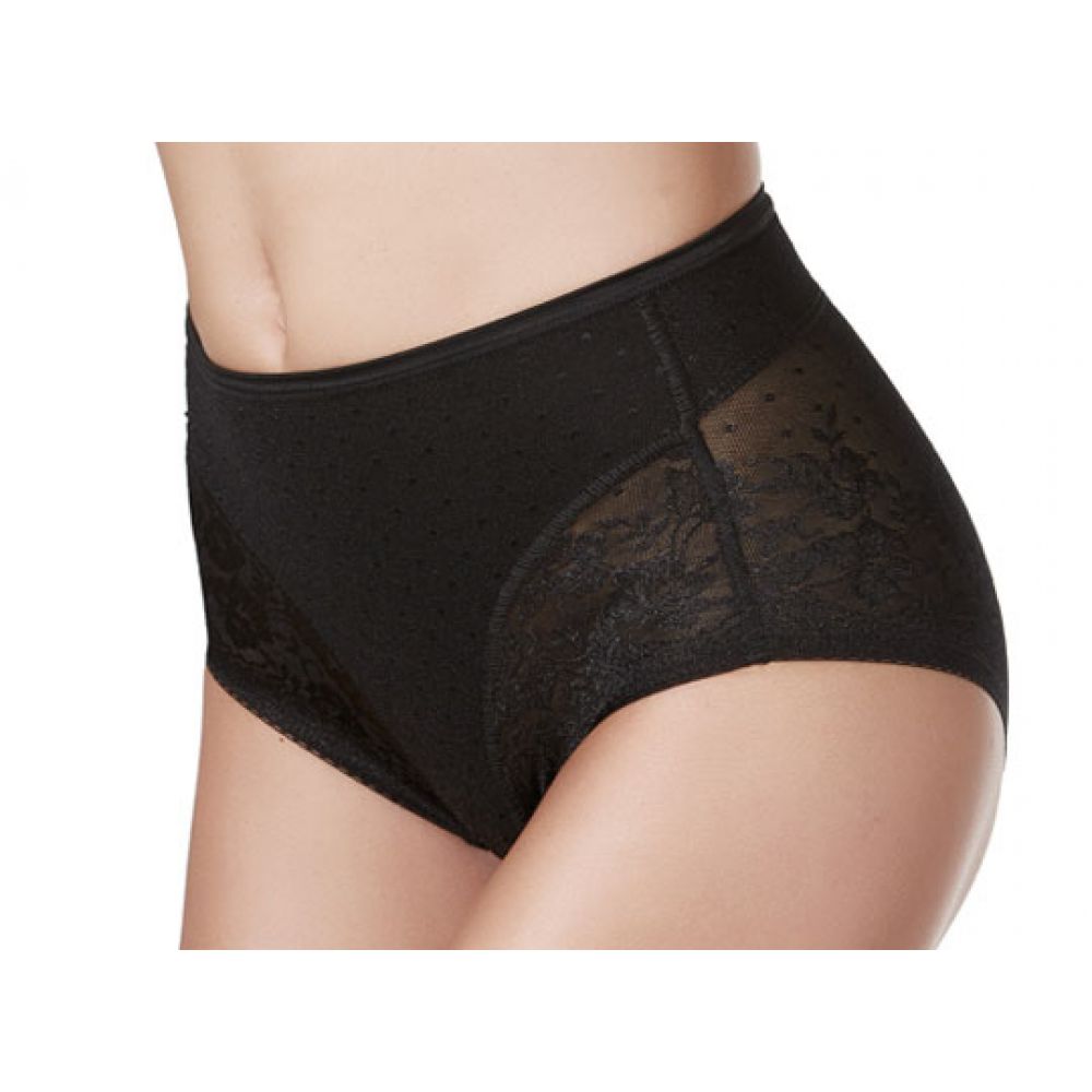 Трусы-утяжка с завышенной линией талии из эластичной сетки с укрепленной передней частью и поясницей. Степень коррекции "STRONG". Высота бочка 14 см. Изюминка коллекции - цветочный дизайн кружева и плоские фестоны по ножке, совершенно не заметны под одеждой. Ластовица выполнена из уникального хлопкового материала.