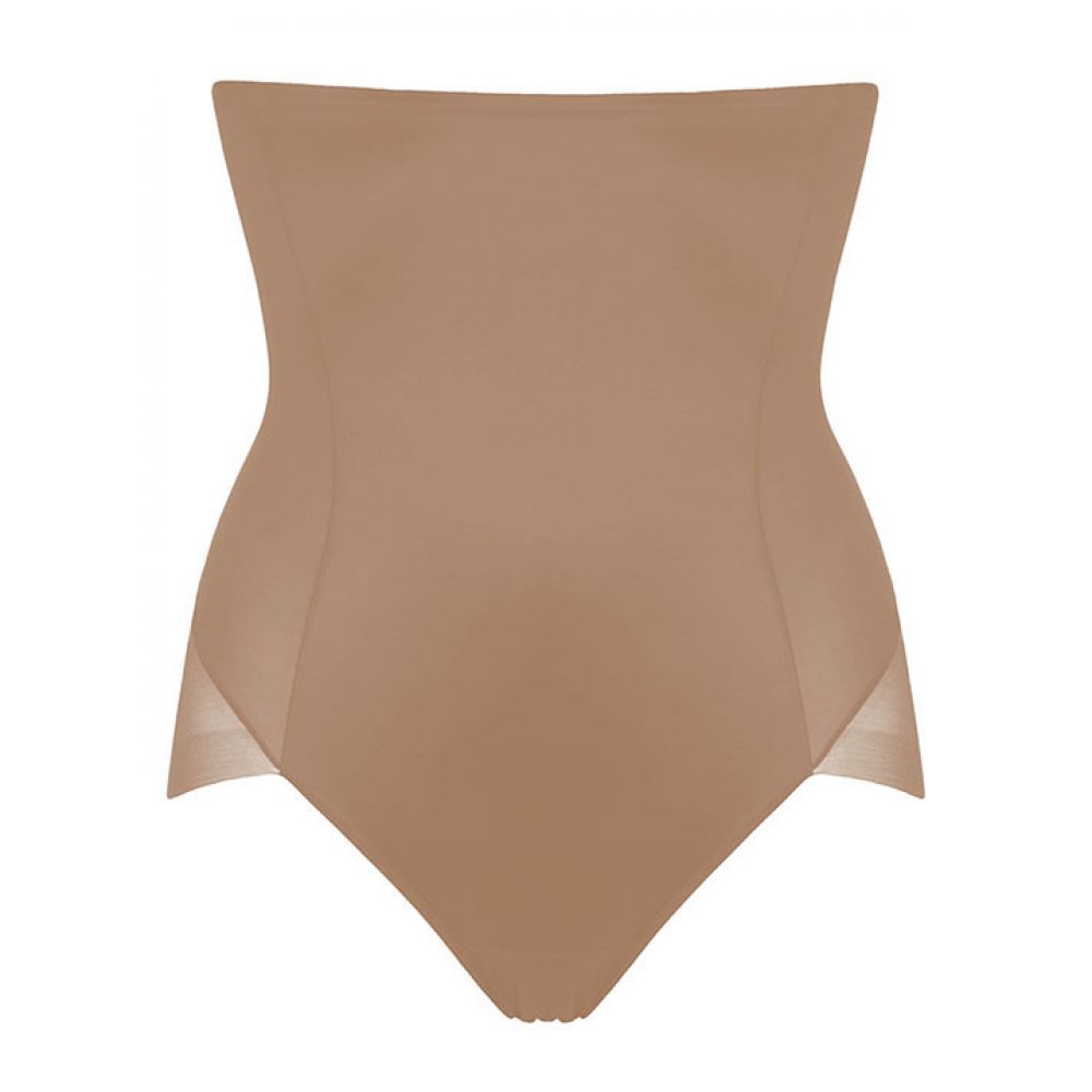 Трусики-утяжка с высокой линией талии. Cильная степень коррекции в области живота, талии и спины. Имеют анатомическую посадку за счет сборки по заднему шву. Верхняя кромка на силиконовой полоске обеспечивает надежную фиксацию на теле. Застежка на ластовице в три ряда на две позиции.