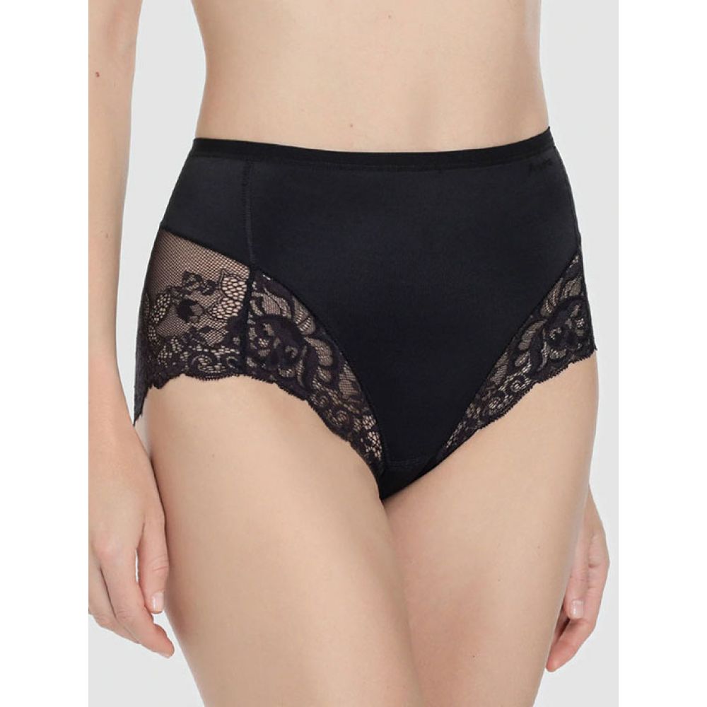 Трусы-утяжка с завышенной линией талии. Высота бочка 16 см. Спереди выполнены из плотной 2-х слойной микрофибры, сзади и по линии открытия ноги из эластичного кружева с бесшовным краем. Уровень коррекции "Medium" Ластовица выполнена из уникального хлопкового материала.