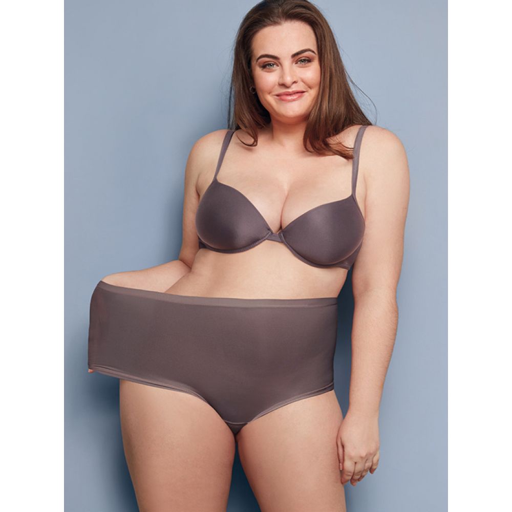 Трусики-слип с высокой линией талии из микрофибры ультра-стрейч. Имеют универсальный размер Xl-XXXL. Высота бочка 20 см. Резинки по талии и линия открытия ноги спереди обработаны мягкой окантовкой. Имеют анатомическую посадку за счет сборки по заднему шву и бесшовный край по линии открытия ноги сзади. Ластовица выполнена из уникального хлопкового материала.