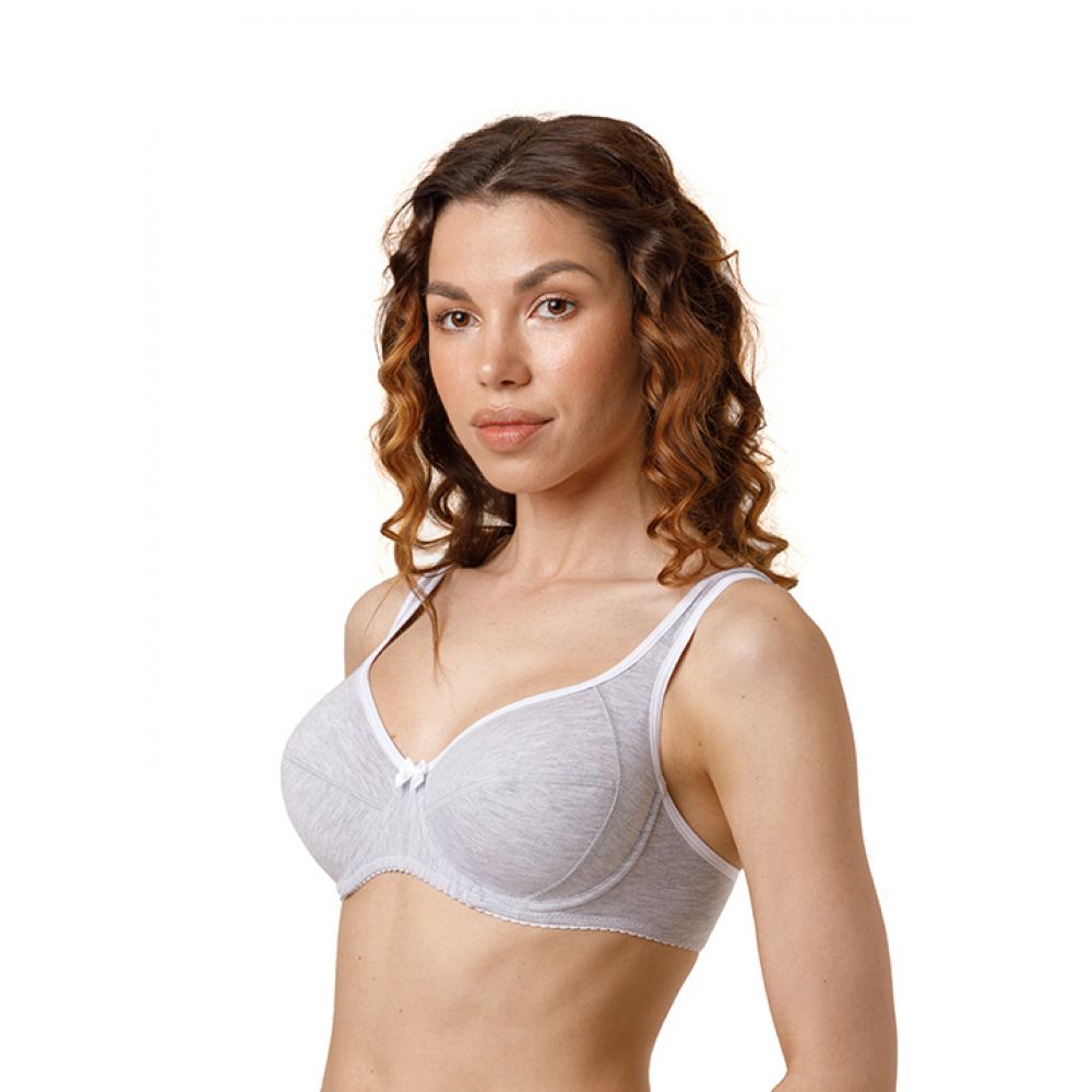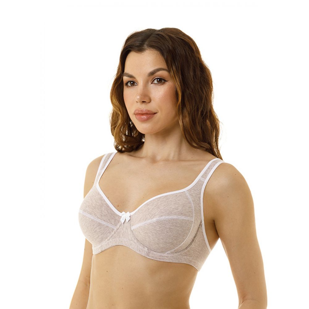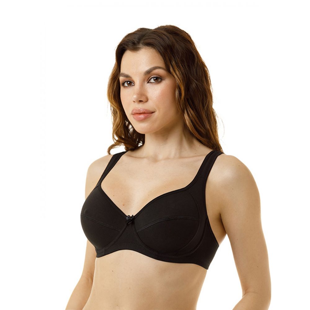 Бюстгальтер на каркасах из х/б эластичного полотна высокого качества. Мягкая чашка с боковым подрезом, без боговой кости и расширенной бретелью. Плоские швы. Нижняя часть чашки и боковой подрез усилены подкладкой.