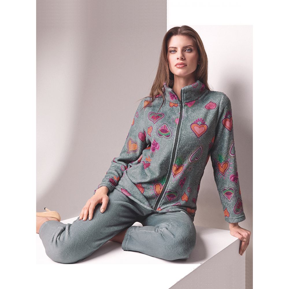 Пижама: кофта с длинным рукавом, на молнии, и брюки на манжетах. Выполнена из флиса. Коллекция "Frida".