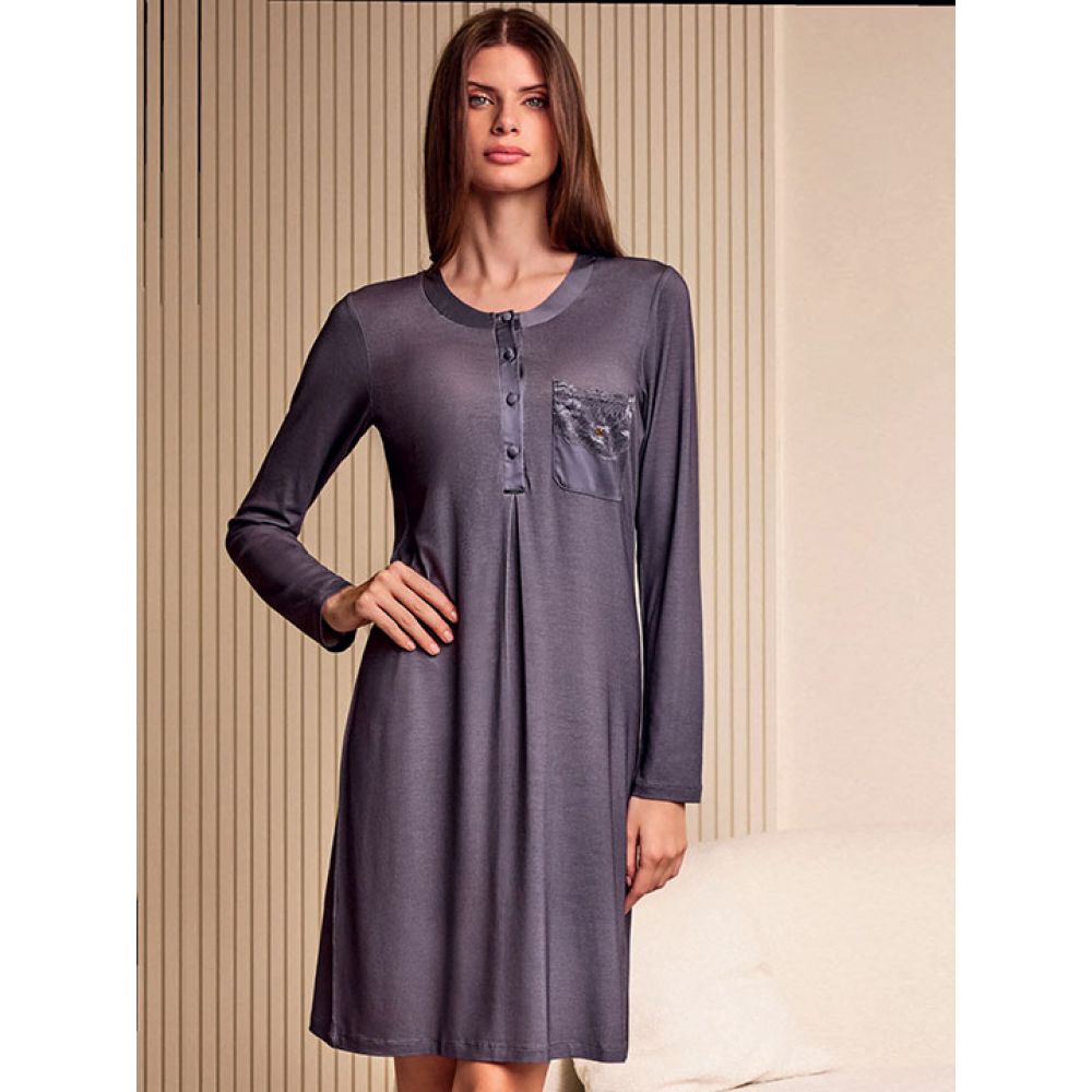 Сорочка с длинным рукавом, пуговицы на планке. Выполнена из вискозы с отделкой из элегантного кружева и шелкового сатина. Коллекция "Saten".