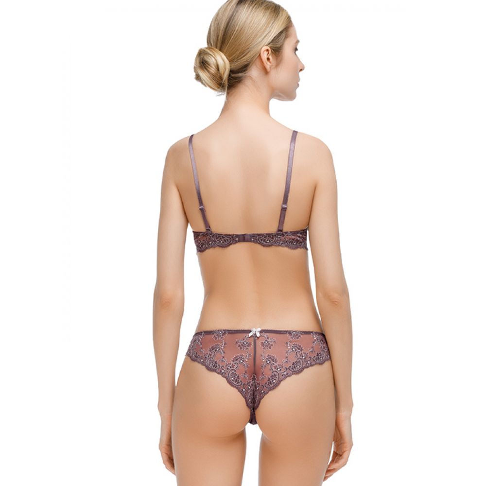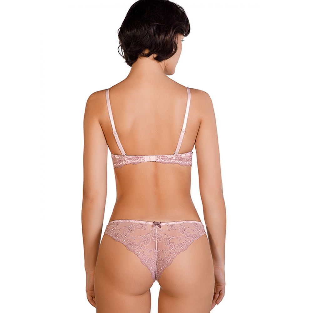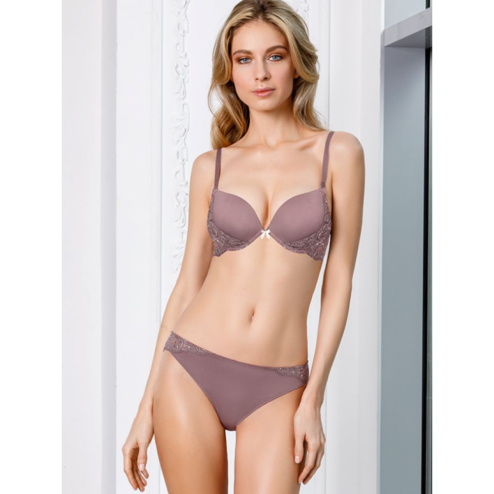 Комплект: бюстгальтер пуш-ап среднего размера с гелевой чашкой Matera и трусики-бразильяна со средней линией талии. Отстегивающиеся бретели. Застежка в один ряд на три позиции. Высота бочка трусиков 5 см. Выполнен из микрофибры и вышивки по сетке. Коллекция "Olivia".