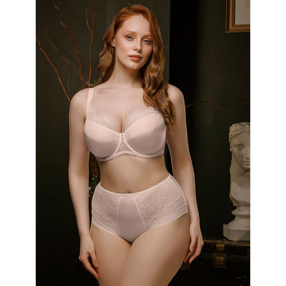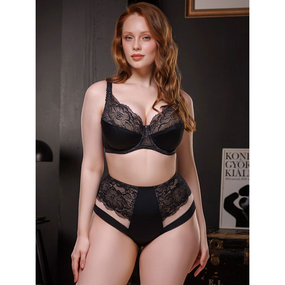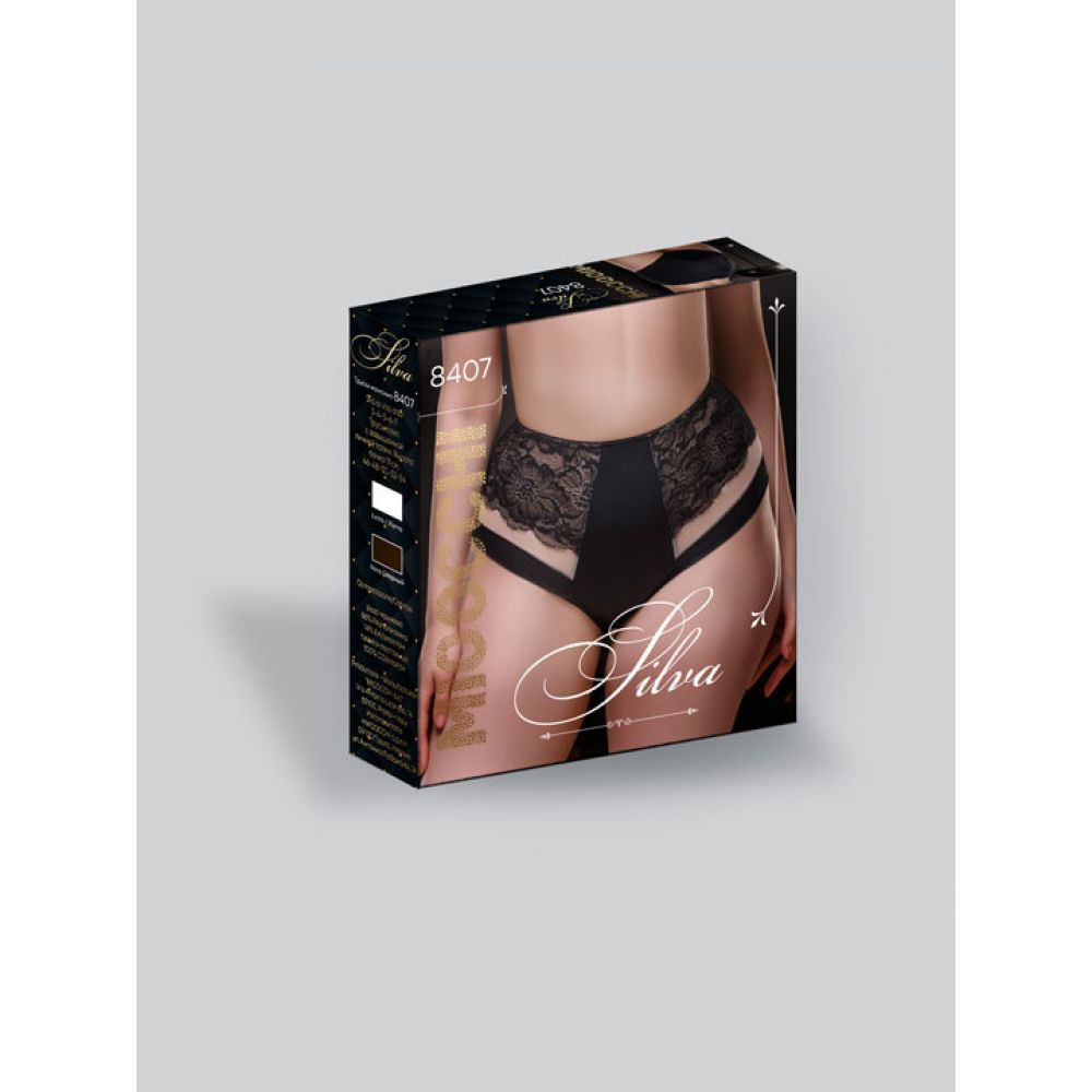 Трусики-слип с завышенной линией талии. Размерный ряд до размера 7. Особая конструкция срезов выреза бедра с окантовкой двойной сеточкой без использования резинок, делает их практически незаметными под облегающей одеждой. Высота бочка 11 см. Коллекция "Silva".