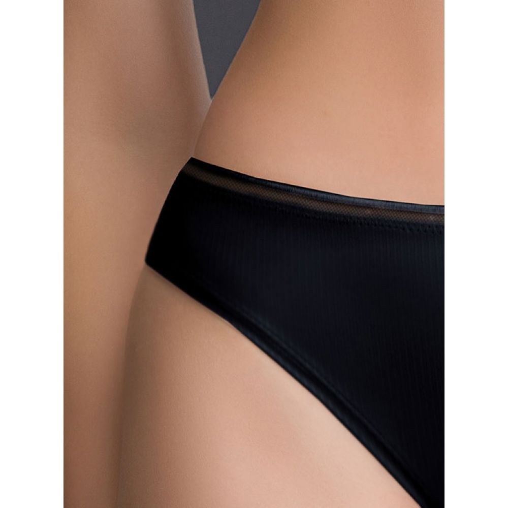 Трусы-бразилиана со средней линией талии. Высота бочка 4,5 см. Модель имеет кант в отделке трусиков по талии, подчеркивает графичность линий. Обработка ножек трусиков в подгибку с плоским срезом без резинок обеспечивает максимальную мягкость. Выполнены из микрофибры с жаккардовым плетением в полоску. Коллекция "Michelle".