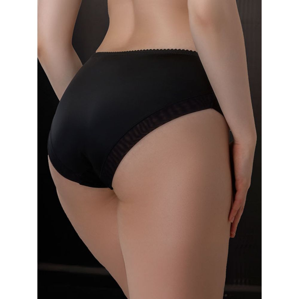 Трусики-слип со средней линией талии. Размерный ряд до размера 7. Особая конструкция срезов выреза бедра с окантовкой двойной сеточкой без использования резинок, делает их практически незаметными под облегающей одеждой. Задняя деталь из двойного слоя сетки. Коллекция "Barbara".