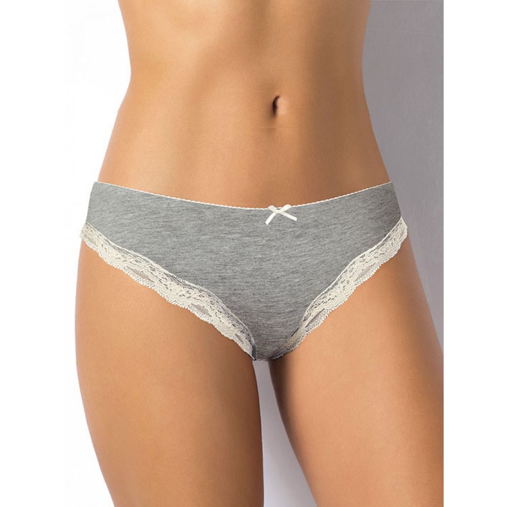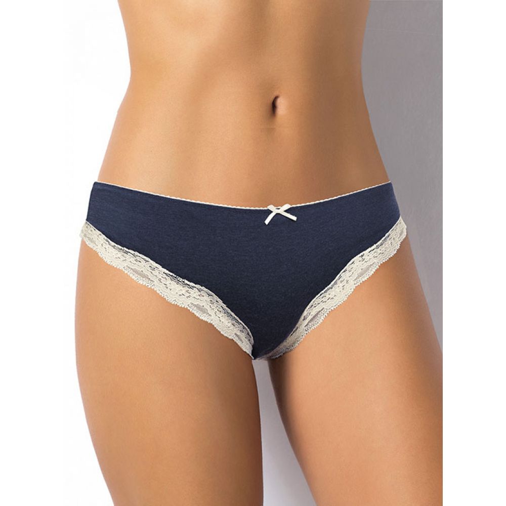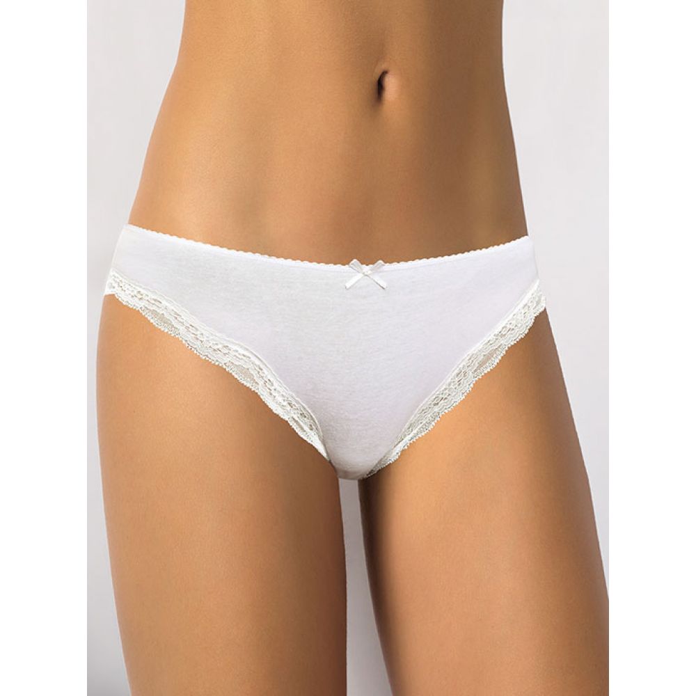 Трусики-бразильяна из мягкого хлопка, декорированные широкой кружевной тесьмой.
