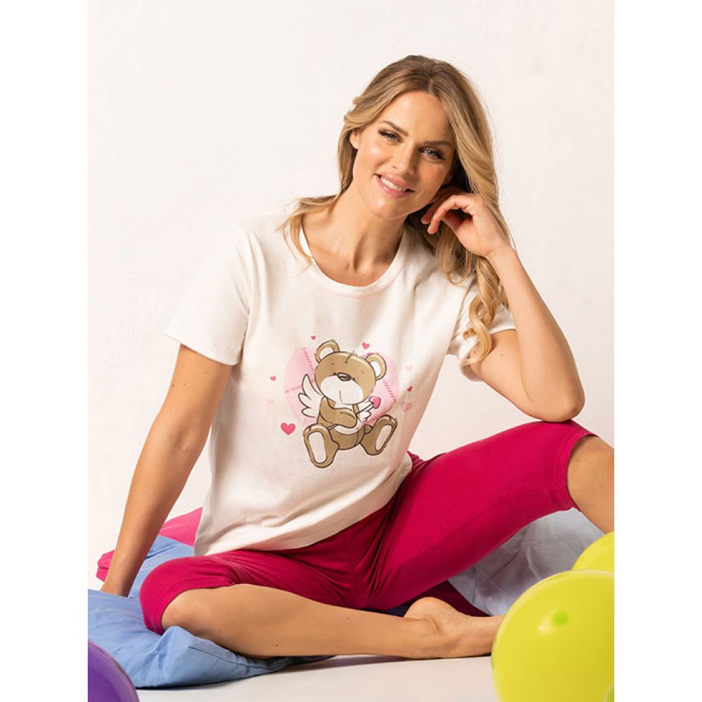 Комплект: футболка с коротким рукавом и капри. Выполнен из хлопка.