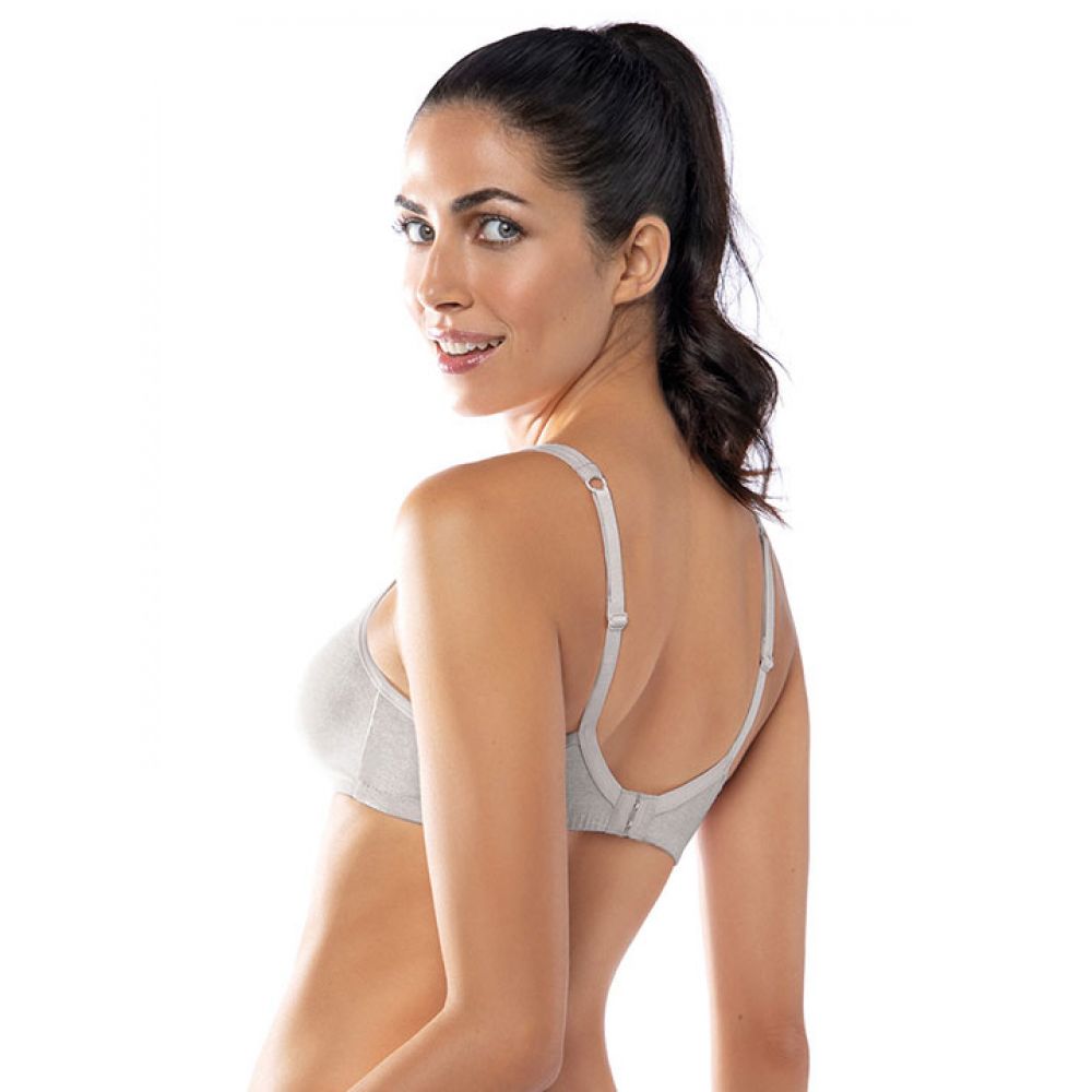 Бюстгальтер с мягкой тканевой чашкой, без косточек. В нижней трети чашки поролоновый вкладыш для лучшей поддержки. Чашка выполнена из двух слоев ткани. Застежка в 2 ряда на 4 позиции. Регулируемые бретели. Изделие выполнено из органического хлопка, собранного вручную, без вредных веществ. Гипоаллергенно.