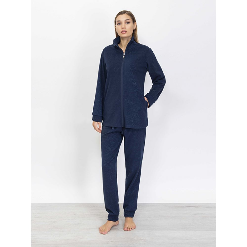 Комплект: кофта на молнии, с длинным рукавом на мягком манжете, с карманами, и брюки с манжетами. Выполнен из флиса. Коллекция "Roses on Pile".