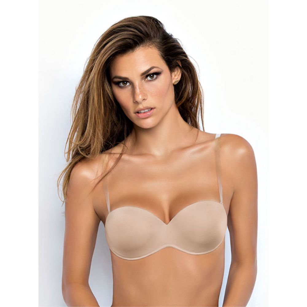 Бюстгальтер "Анжелика" трансформер с формованными чашками с пуш-ап, на косточках. Отстегивающиеся, регулируемые бретели полностью обтянуты микрофиброй. Силиконовая спинка шириной 3 см. В комплект входят дополнительные силиконовые бретели. Застежка в два ряда на четыре позиции. Выполнен из эластичной, мягкой микрофибры. Коллекция "Fantastic".