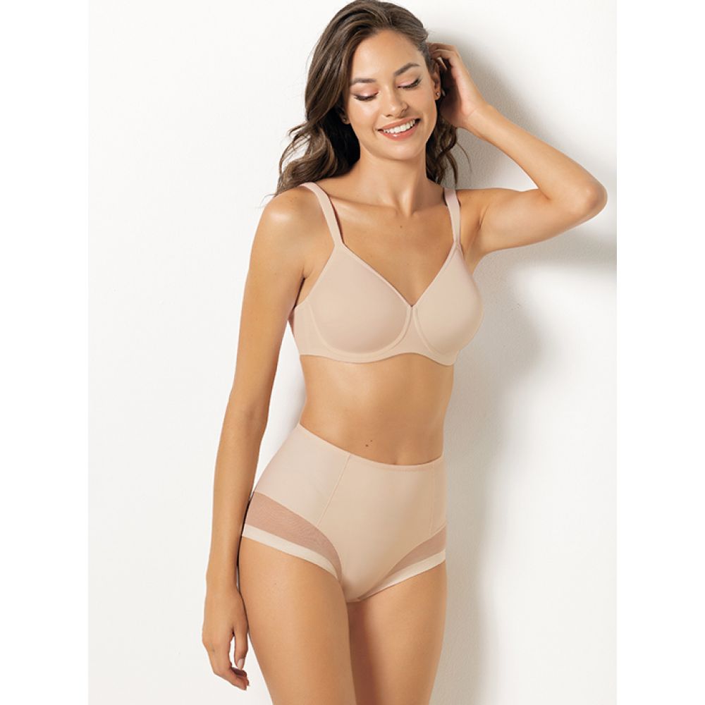 Трусы-утяжка с завышенной линией талии. Выполнены из уплотненной микрофибры. Передняя часть дублирована сеткой обеспечивающей легкий утягивающий эффект и поддержку в области живота. Высота бочка 16 см. Коллекция "Everybody".