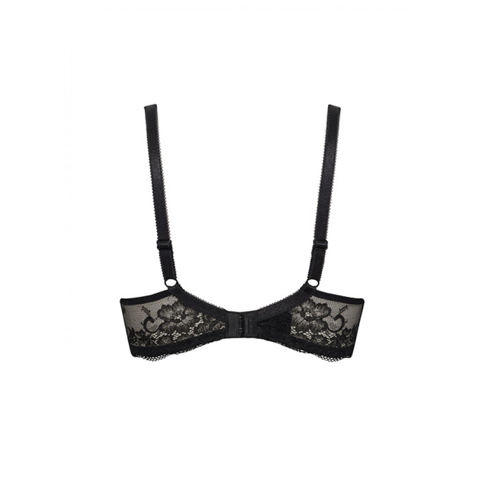 Бюстгальтер балконет с формованными чашками без пуш-ап, на косточках. Стан спереди усилен неэластичной сеткой. В боковых швах скрыты упругие каркасы для лучшей посадки. Маечный вид спинки. Бретели несъемные, регулируемые. Застежка в 2 ряда на 4 позиции. Выполнен из мягкого эластичного кружева. Коллекция "Wonder Lace".