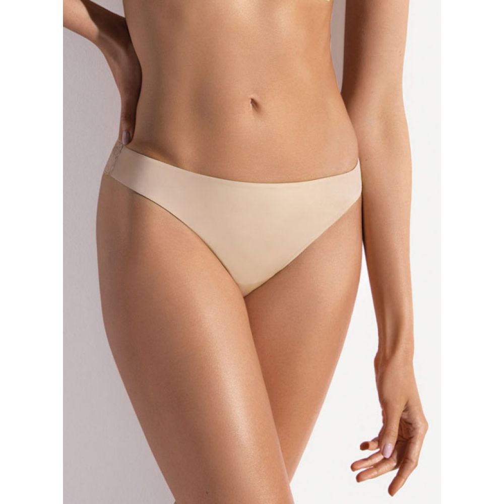 Трусики-бразилиана со средней линией талии. Передняя деталь дублирована вторым слоем микрофибры со скрытыми резинками по талии и ножке. Высота бочка 4 см. Выполнен из микрофибры и мягкого кружева с цветочным рисунком. Коллекция "Allure".