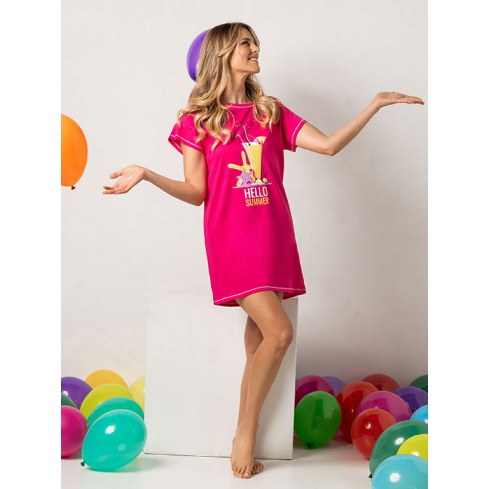 Удлиненная футболка с коротким рукавом. Длина 85 см. Выполнена из хлопка.
