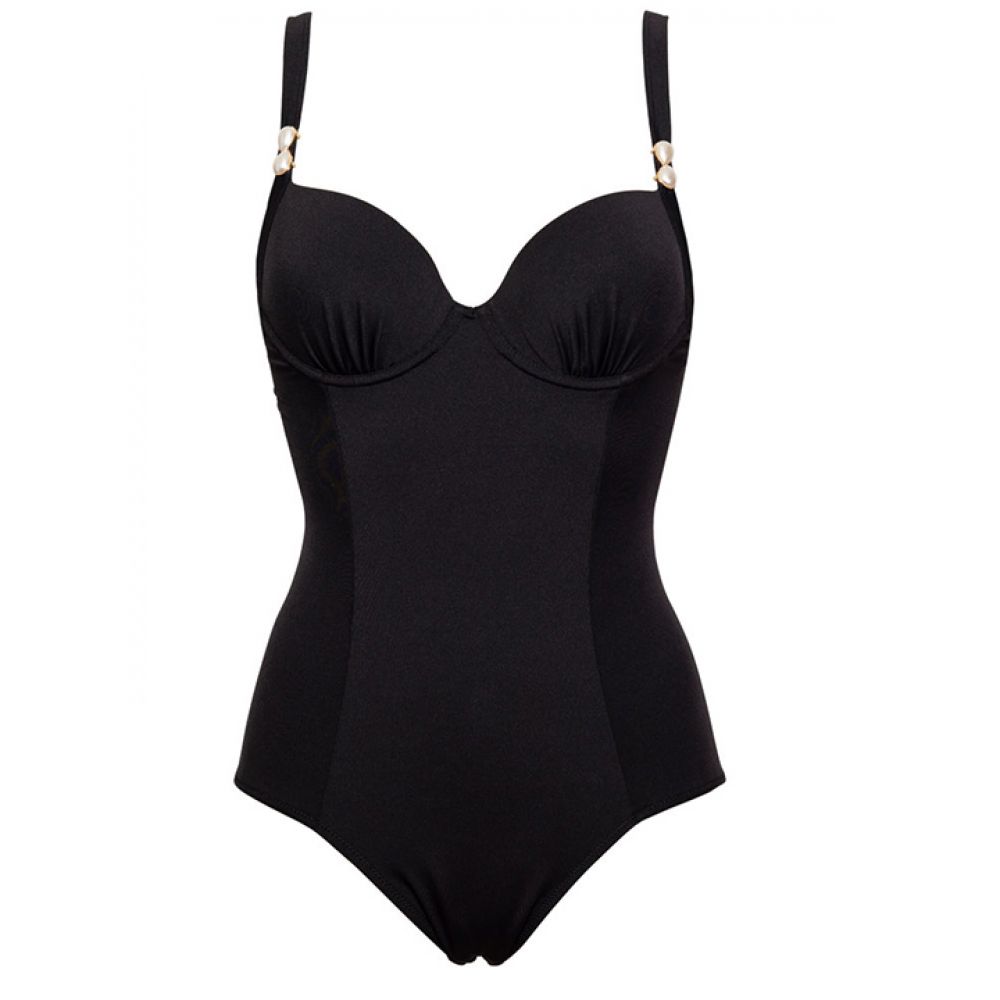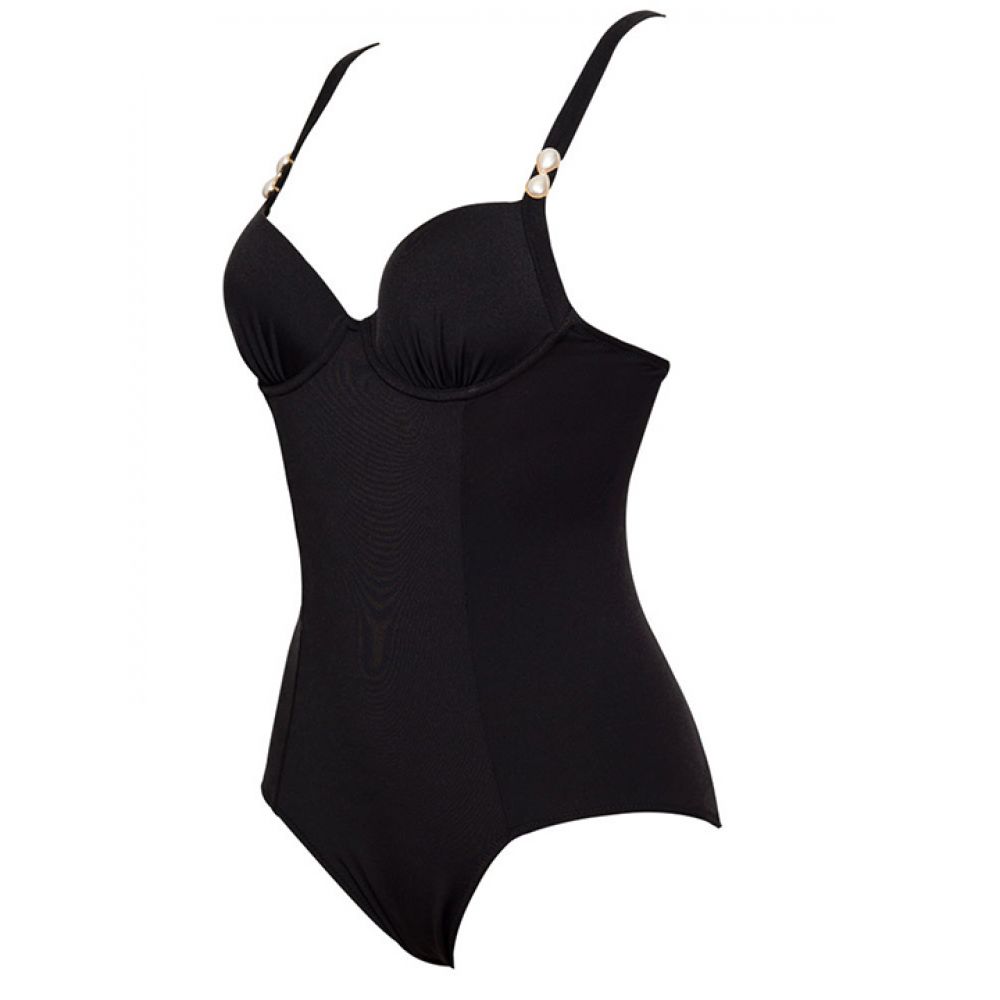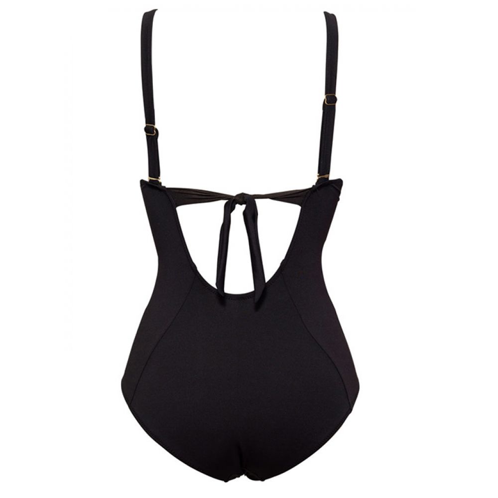 Совместный купальник с формованными чашками (без пуш-ап) на косточках. Передняя часть купальника дублирована укрепленной сеткой обеспечивающей легкий утягивающий эффект и поддержку. Регулируемые бретели, два вида завязывания. Застежка- завязка на спинке.