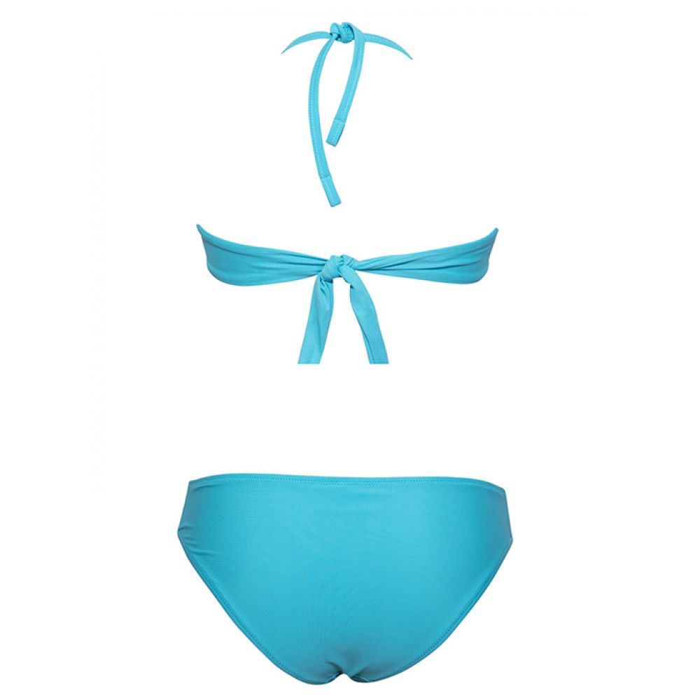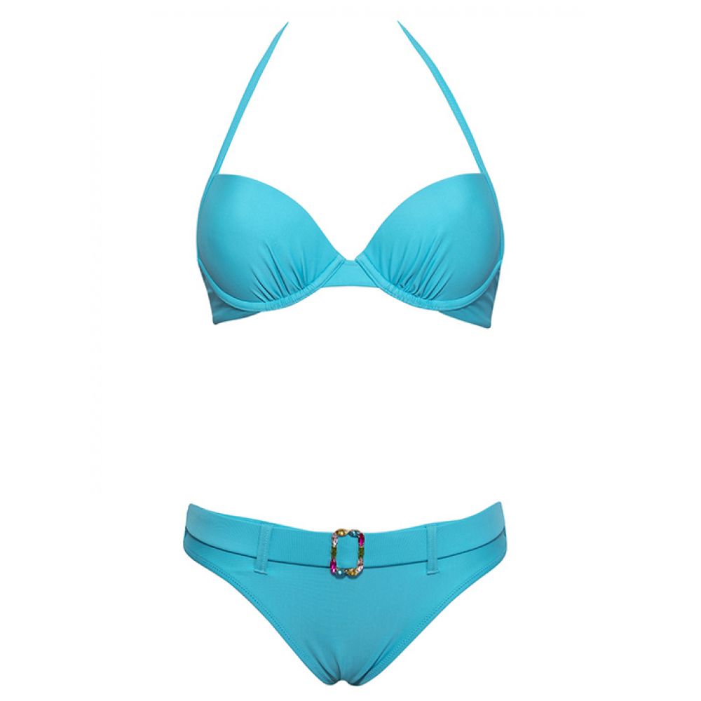 Раздельный купальник: бюстгальтер с формованной чашкой без пуш-ап на косточках. Нерегулируемые бретели с двойным вариантом завязывания. Застежка- завязка на спинке. Трусики-слип, высота бочка 5 см.