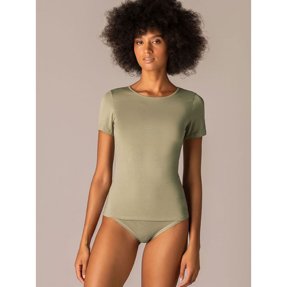 Футболка с круглым вырезом и коротким рукавом. Выполнена из модала.