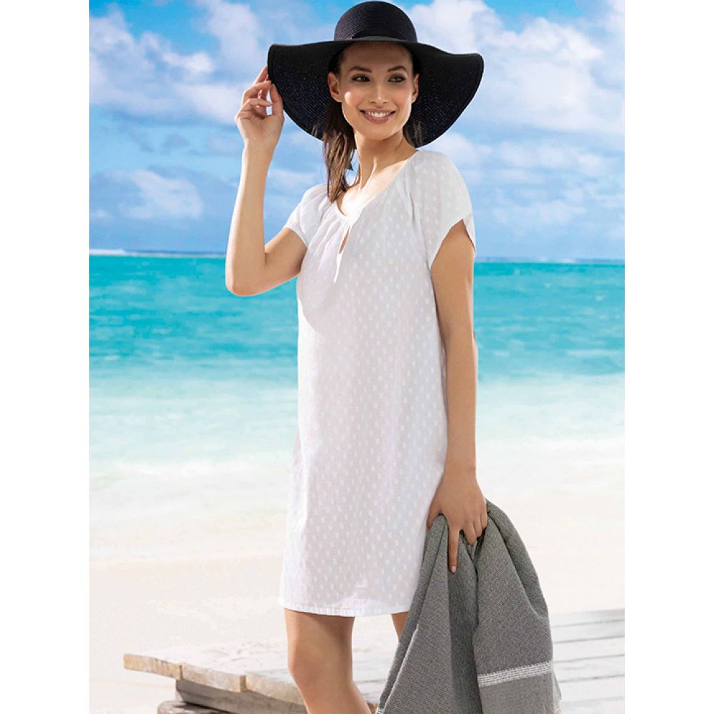 Пляжное платье с коротким рукавом. Свободный силуэт. Длина ок. 85 см.
