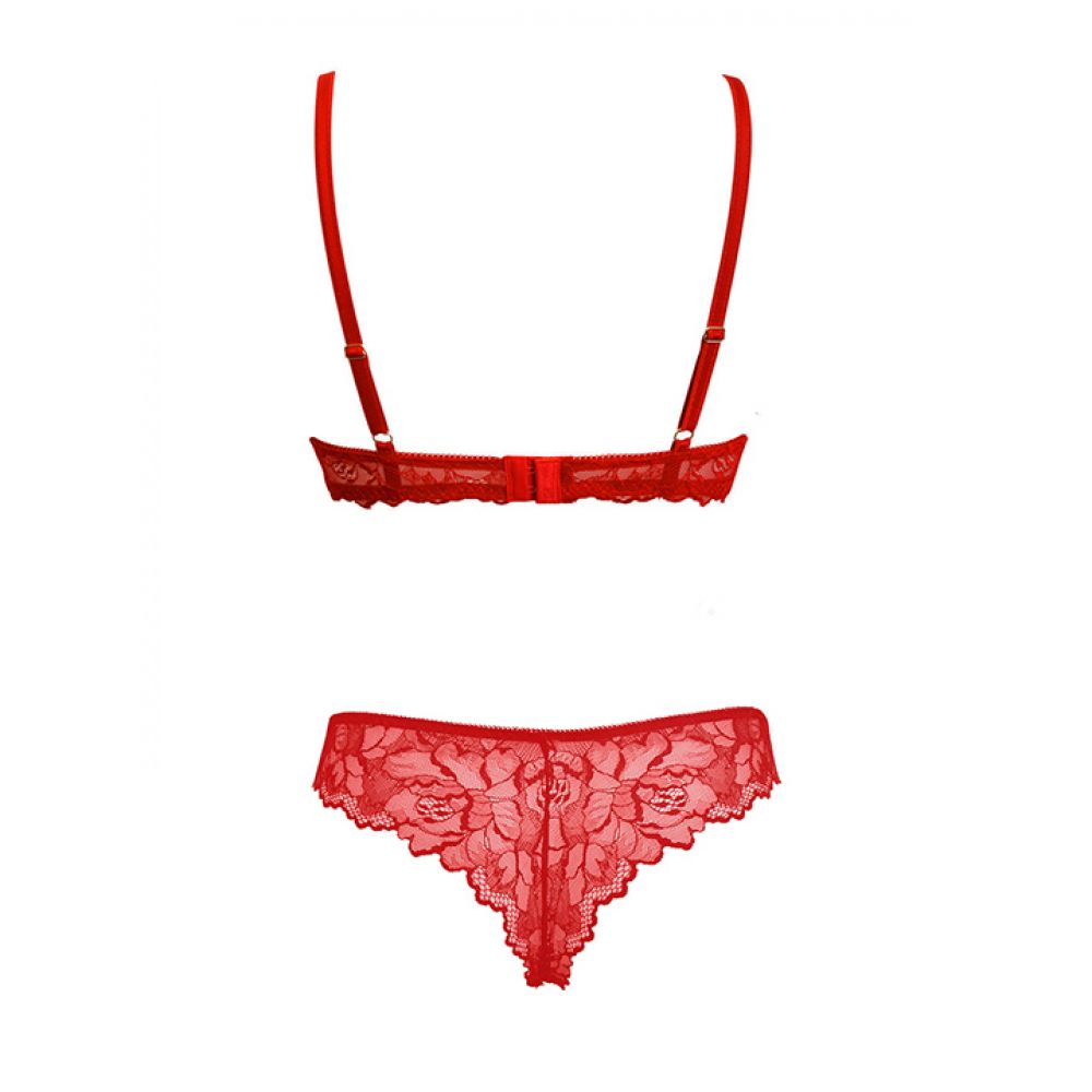 Кружевной комплект из бюстгальтера с полой формованной чашкой и трусиков бразилиана со средней линией талии. Бретели несъемные, регулируемые по всей длине. Выполнен из кружева. Коллекция "Incanto".