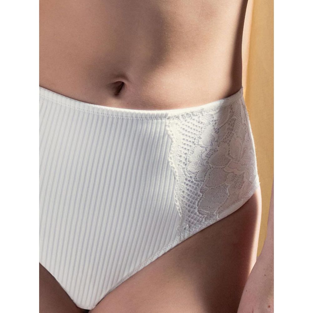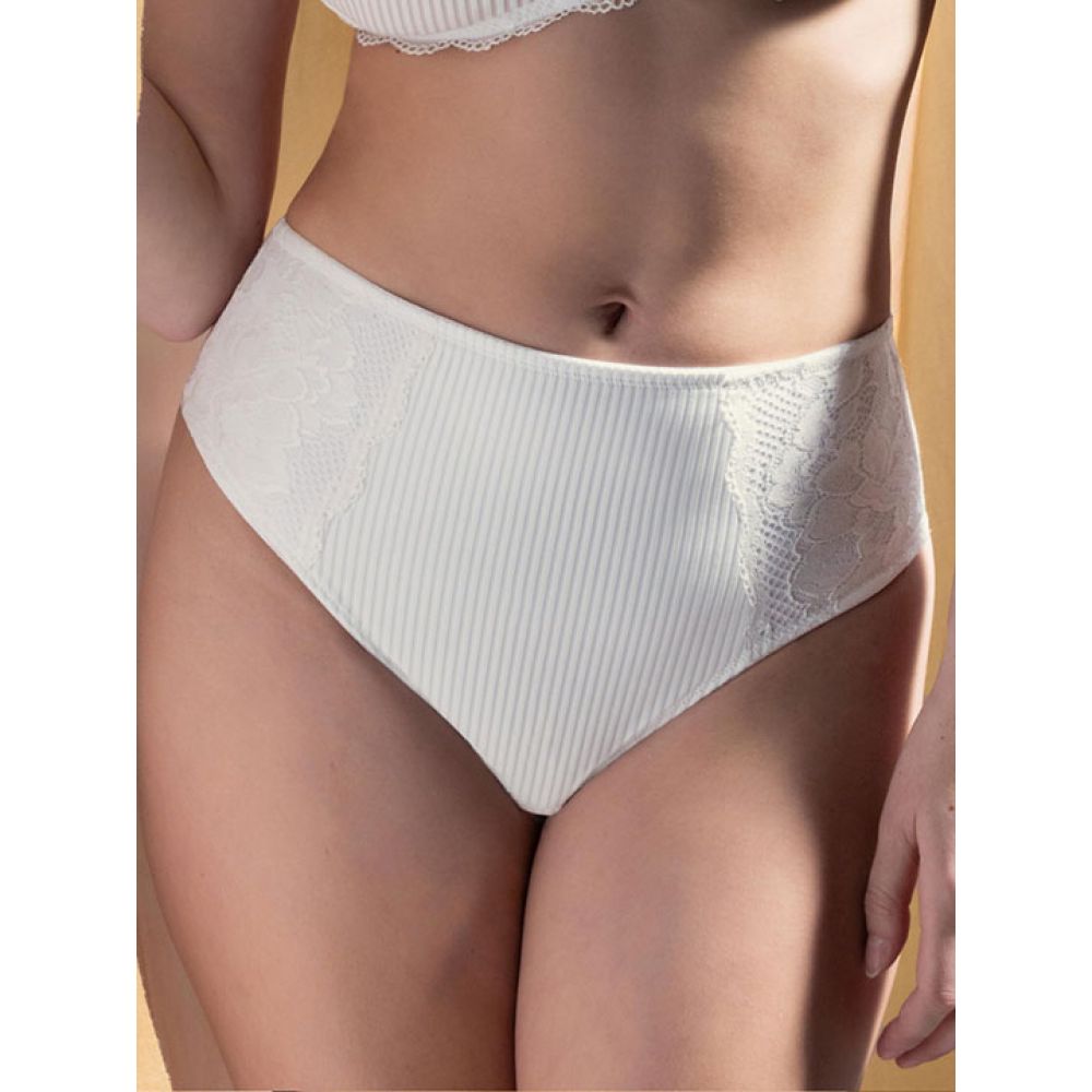 Трусики-слип с завышенной линией талии. Передняя деталь усилена двойным слоем ткани, деликатно формирующей силуэт. Выполнены из жаккардового микроволокна и тонкого цветочного кружева. Линия открытия ноги сзади выполнена по бесшовной технологии. Коллекция "Armony".
