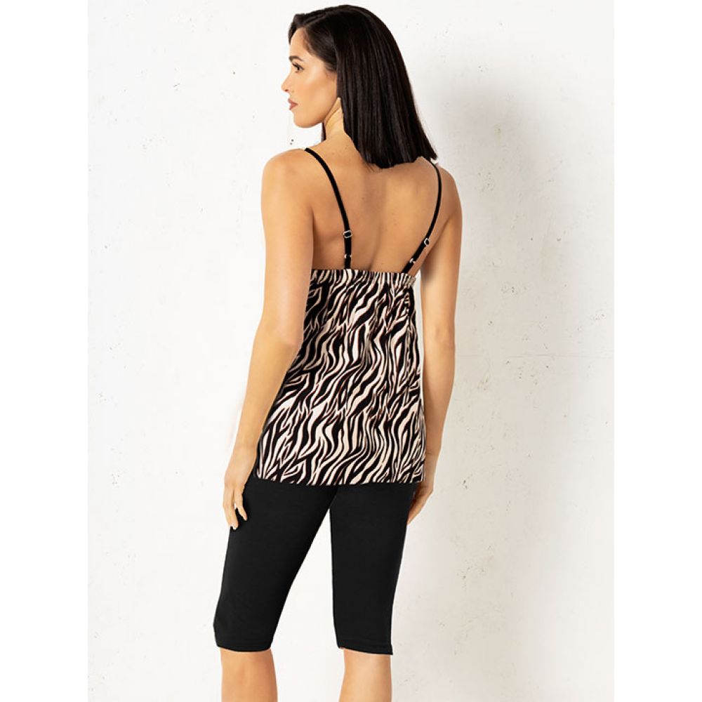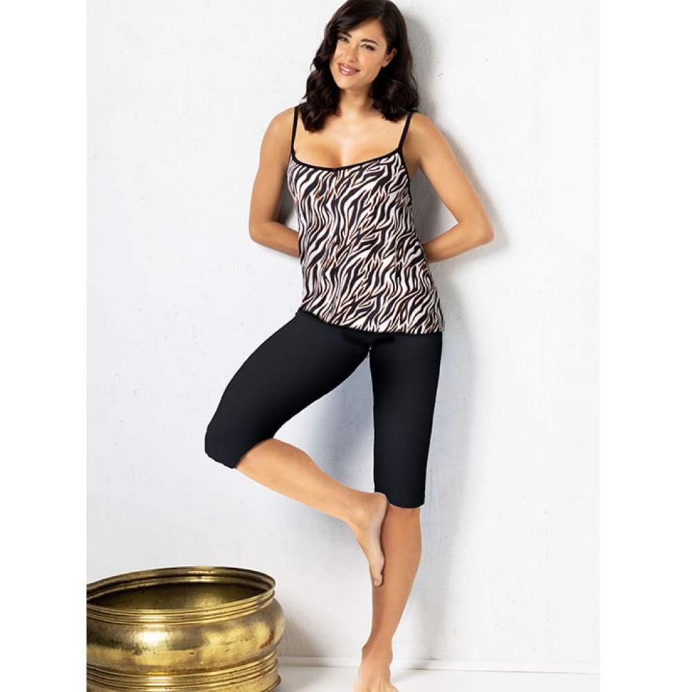 Комплект: топ на узких бретелях и капри. Выполнен из вискозы.