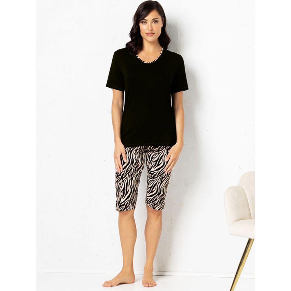 Комплект: футболка с коротким рукавом и шорты. Круглый вырез горловины. Выполнен из вискозы.