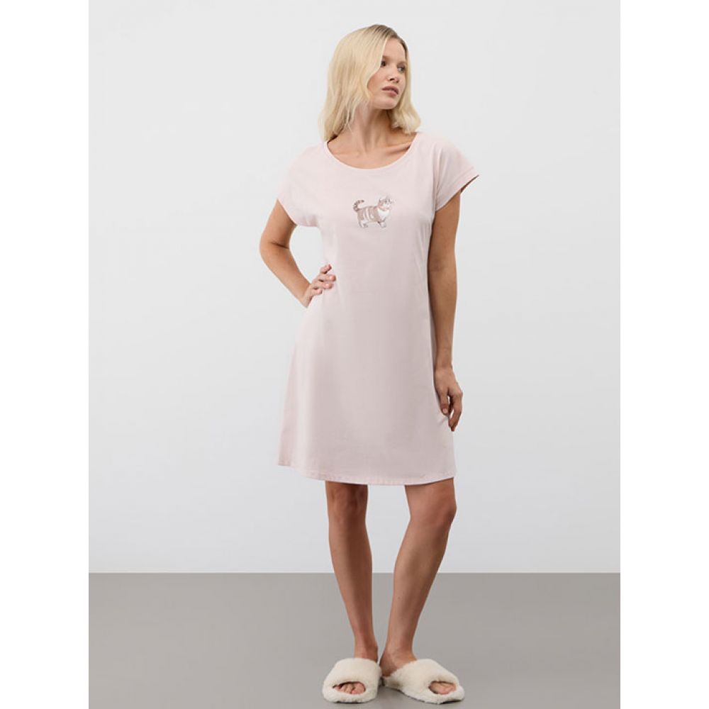 Сорочка с круглым вырезом и коротким рукавом. Выполнена из набивного трикотажа супрем с нежным рисунком.