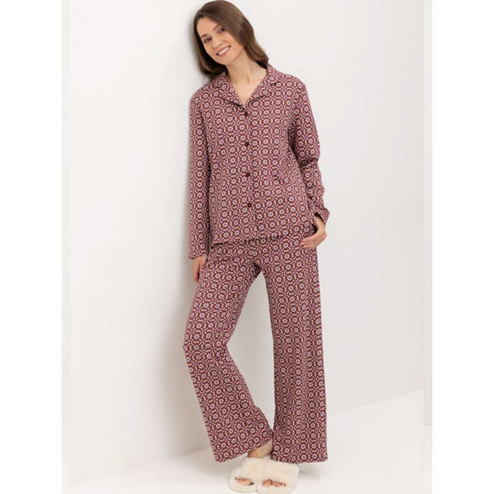 Комплект для комфортного сна и отдыха из набивного трикотажа из 100% натурального хлопка. Рубашка с длинными рукавами на пуговицах. Брюки с мягким поясом на резинке. Гладкий материал приятен к телу, не теряет форму и позволяет коже дышать. Гипоаллергенные красители.