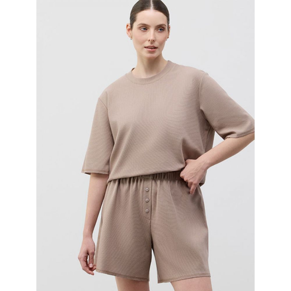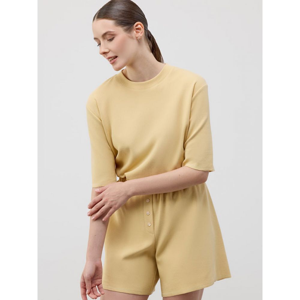 Пижама из футболки с рукавом до локтя и шорт. Футболка с круглым воротом. Материал - вафельный интерлок.